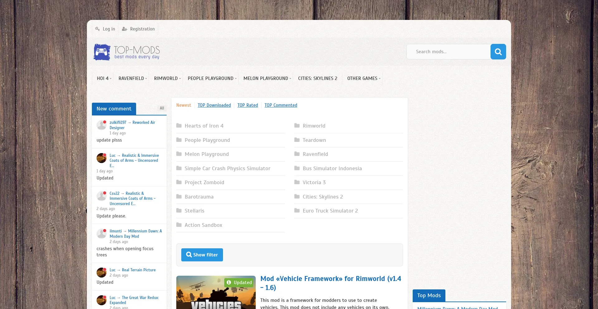 Top mods for Euro Truck Simulator 2, Hearts of Iron 4, City Car Driving, American Truck Simulator, Ravenfield.