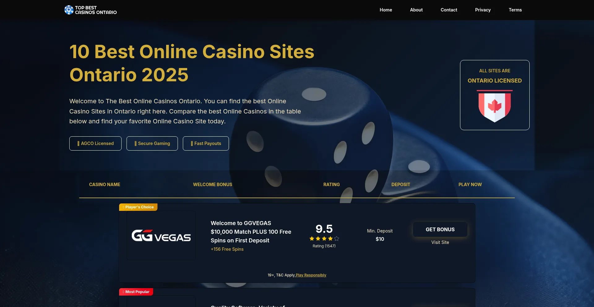Welcome to The Best Online Casinos Ontario. You can find the best Online Casino Sites in Ontario right here. Compare the best Online Casinos in the table below and find your fav...