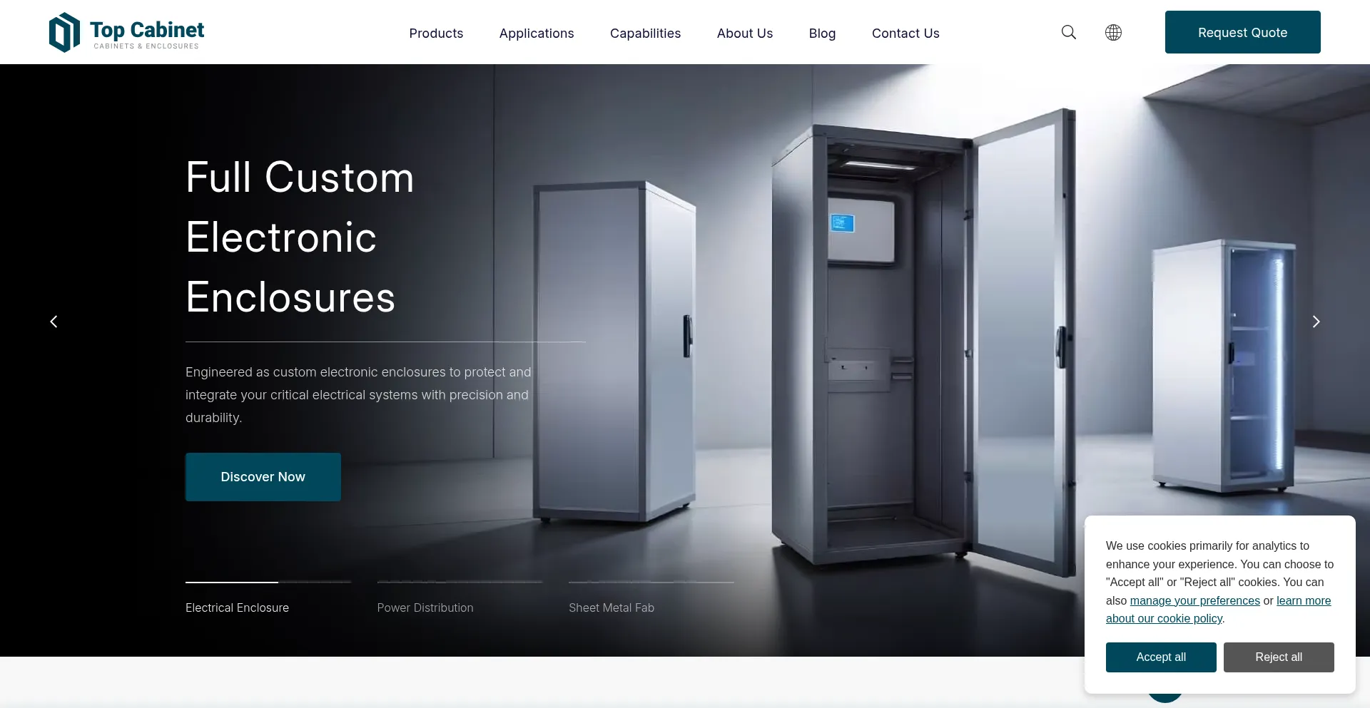 该网站实现符合GDPR或CCPA等隐私法规的cookie同意机制。这表明 topcabinet.com 遵守数据保护标准并为用户提供对个人数据收集实践的控制。