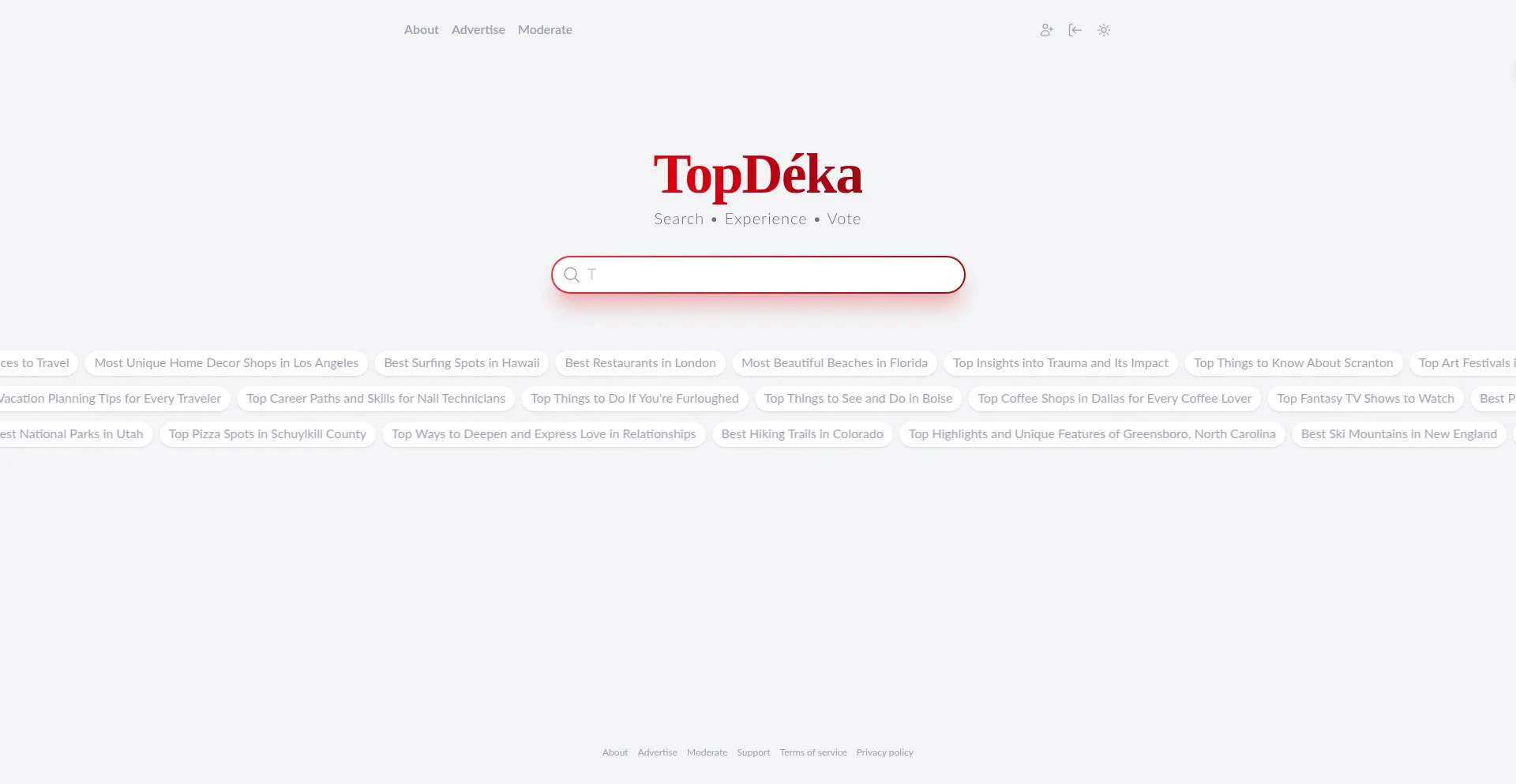 TopDeka flips the script on search. Instead of algorithms, community decides what is best through real user votes that shape dynamic, evolving results. Find the best recommendat...