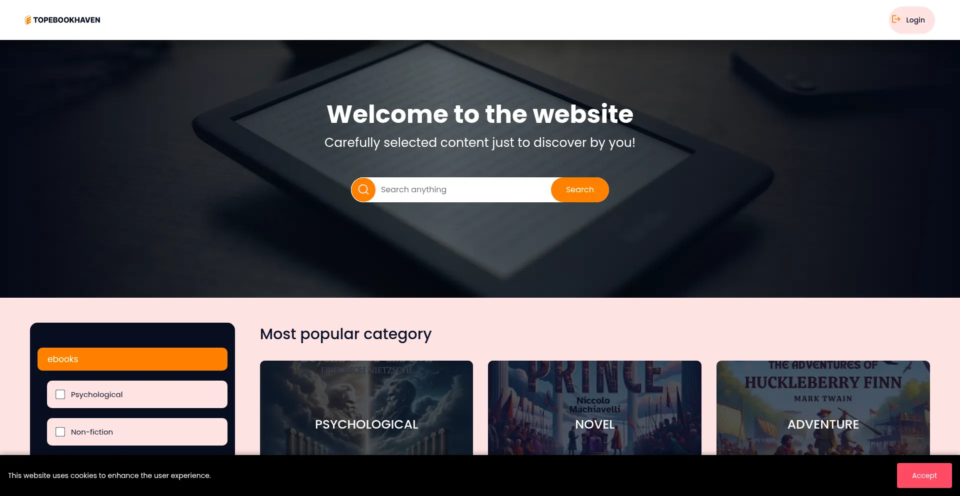 网站 topebookhaven.com 使用 React 构建,这是一个用于创建交互式用户界面的流行 JavaScript 库。