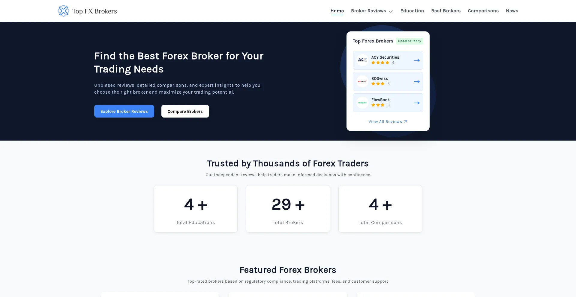 Looking for the top forex brokers in 2025? TopFXBrokers offers unbiased reviews, expert comparisons, and rankings to help traders make informed choices
