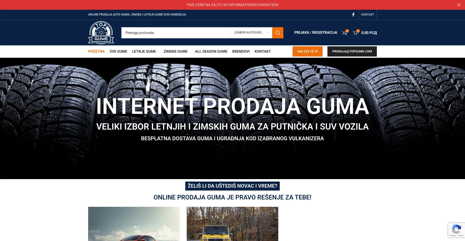Internet prodaja guma. Prodaja zimskih i letnjih guma za sva vozila.
