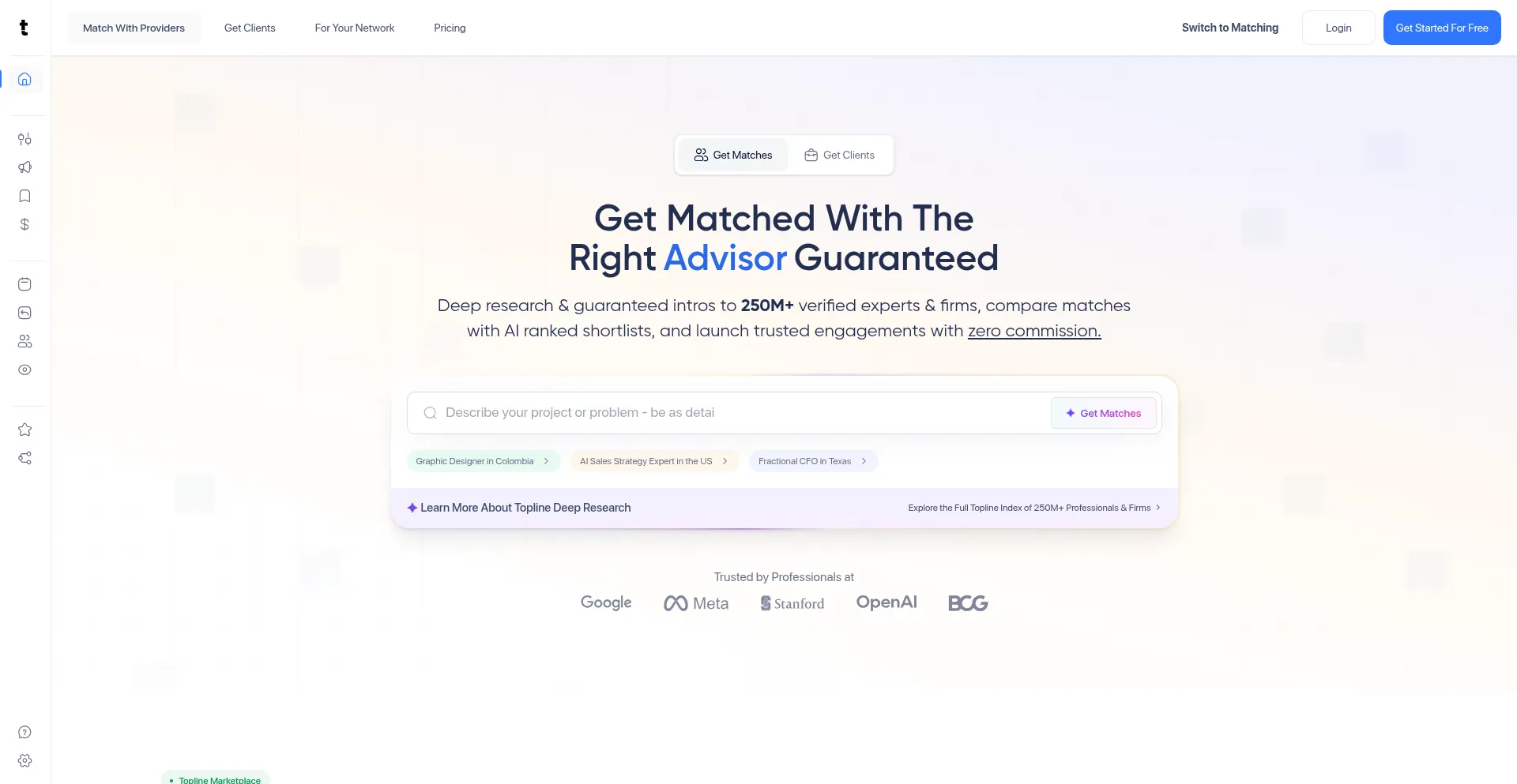 Deep research & guaranteed intros to 250M+ verified experts & firms, compare matches with AI ranked shortlists, and launch trusted engagements with zero commission.