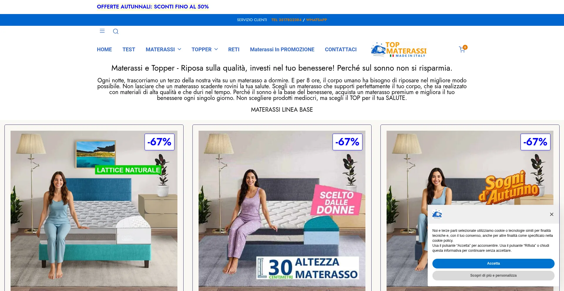 Scopri le offerte al -50%. Materassi e topper di tutti i tipi di qualità garantita. Scopri le offerte online. Consegna Gratuita. Consigli telefonici.