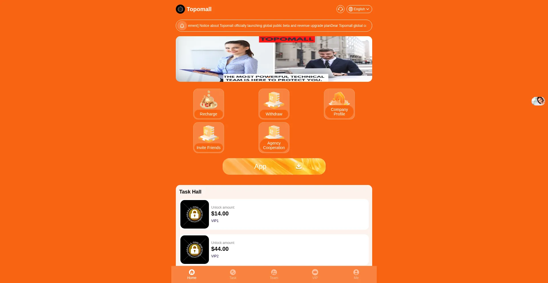 Topomall.com 运营欺诈性金融平台,推广具有不现实回报承诺的欺骗性投资机会。安全分析表明该平台采用与 庞氏骗局 和预付费欺诈一致的策略,旨在提取用户资金和个人信息。