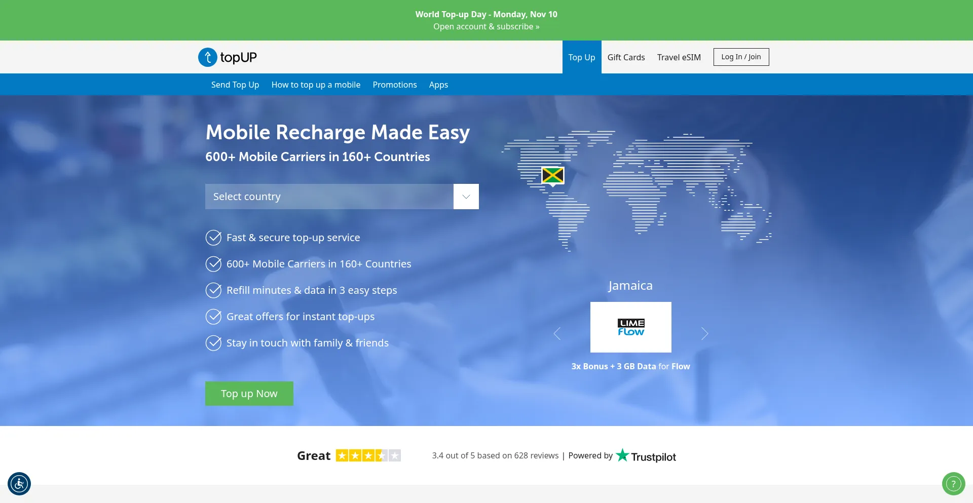 topup.com 提供 Android 设备移动应用程序,表明平台存在已扩展到网络服务之外。