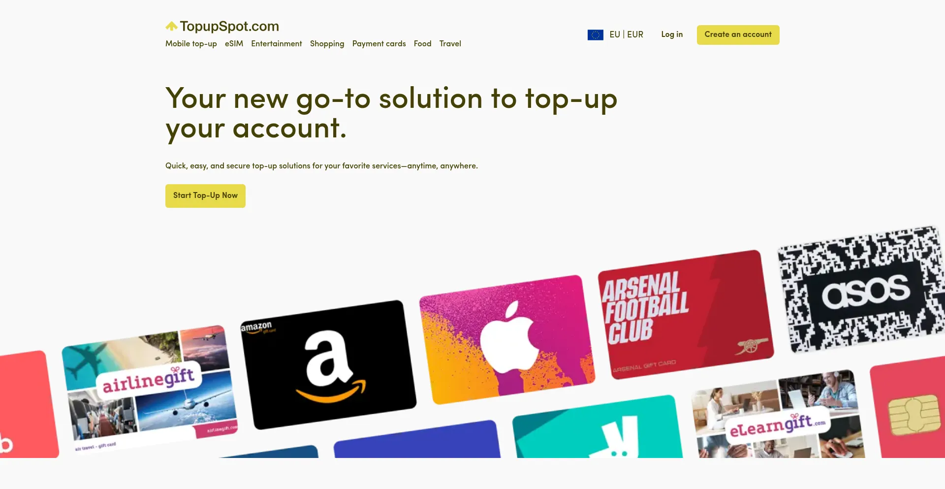 #1 in Global mobile top up, Gift cards and Payment cards | TopupSpot.com
