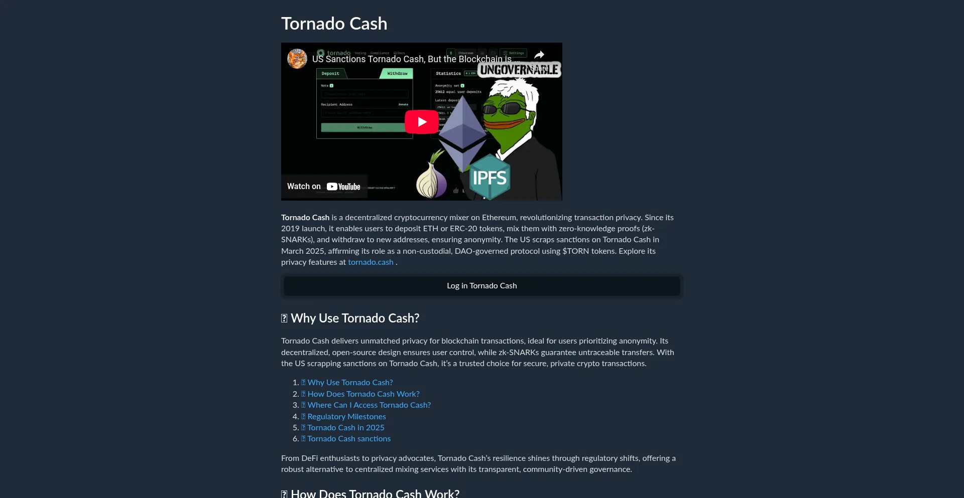 Tornado Cash: Decentralized Ethereum Mixer for Private Crypto Transactions