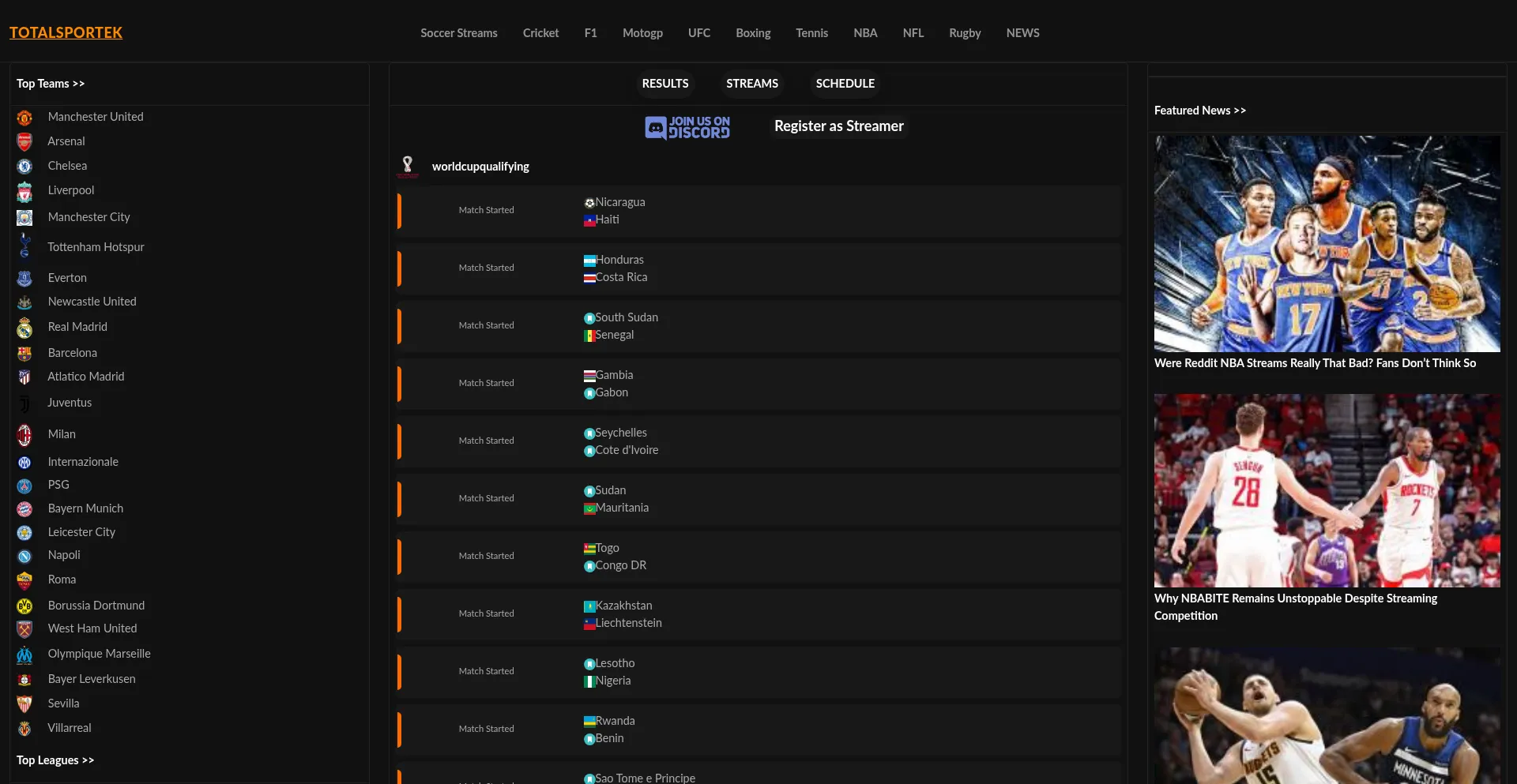 TOTALSPORTEK New, fast and mobile friendly layout bringing you best live streaming of sports 75+ working links for every match.