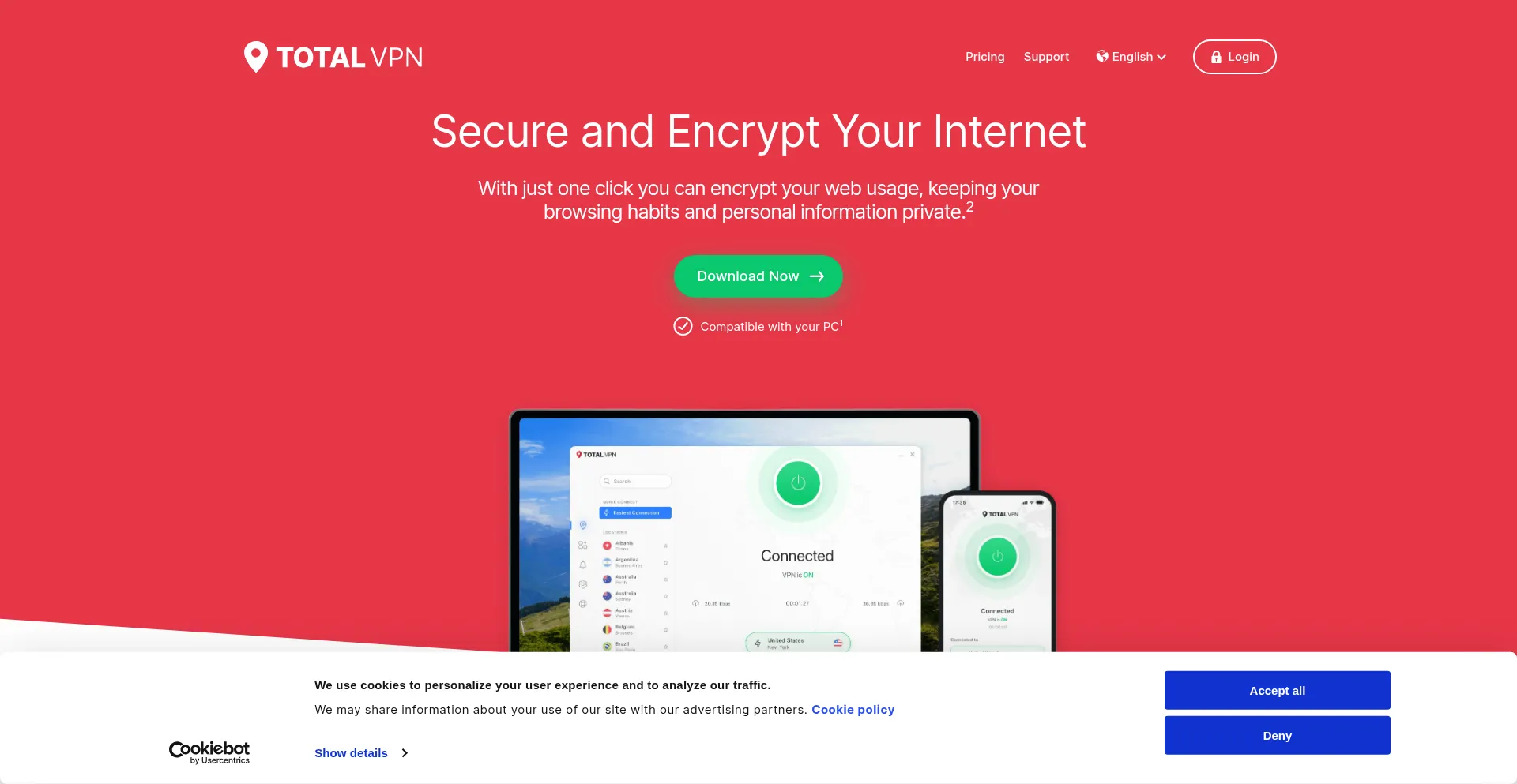 Secure your internet with Total VPN. Enjoy fast, private, and unlimited browsing on any device with our easy-to-use VPN service.