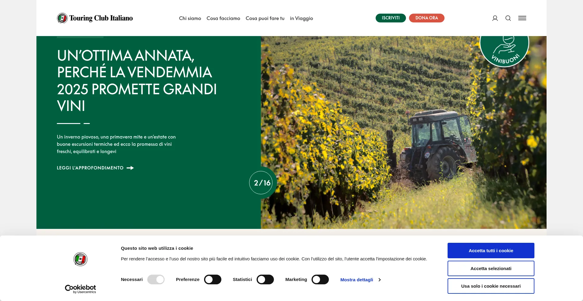 该网站实现符合GDPR或CCPA等隐私法规的cookie同意机制。这表明 touringclub.it 遵守数据保护标准并为用户提供对个人数据收集实践的控制。