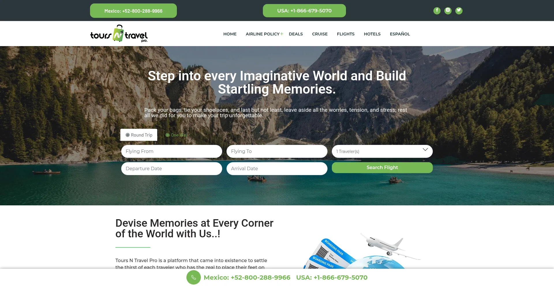 网站上存在社交媒体链接表明 toursntravelpro.com 在社交媒体上维护官方账户,这是可信度和参与度的积极信号。