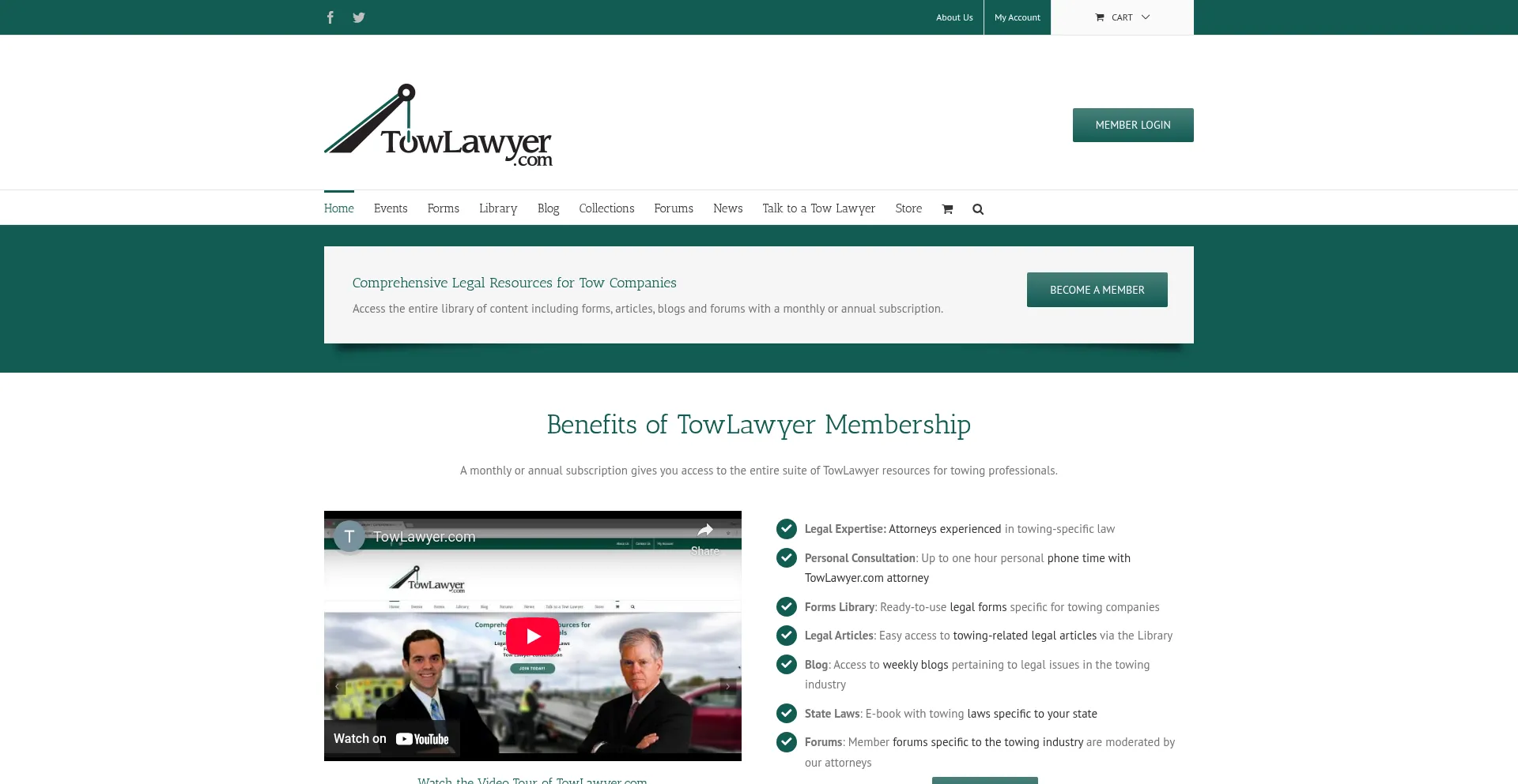 网站上存在社交媒体链接表明 towlawyer.com 在社交媒体上维护官方账户,这是可信度和参与度的积极信号。