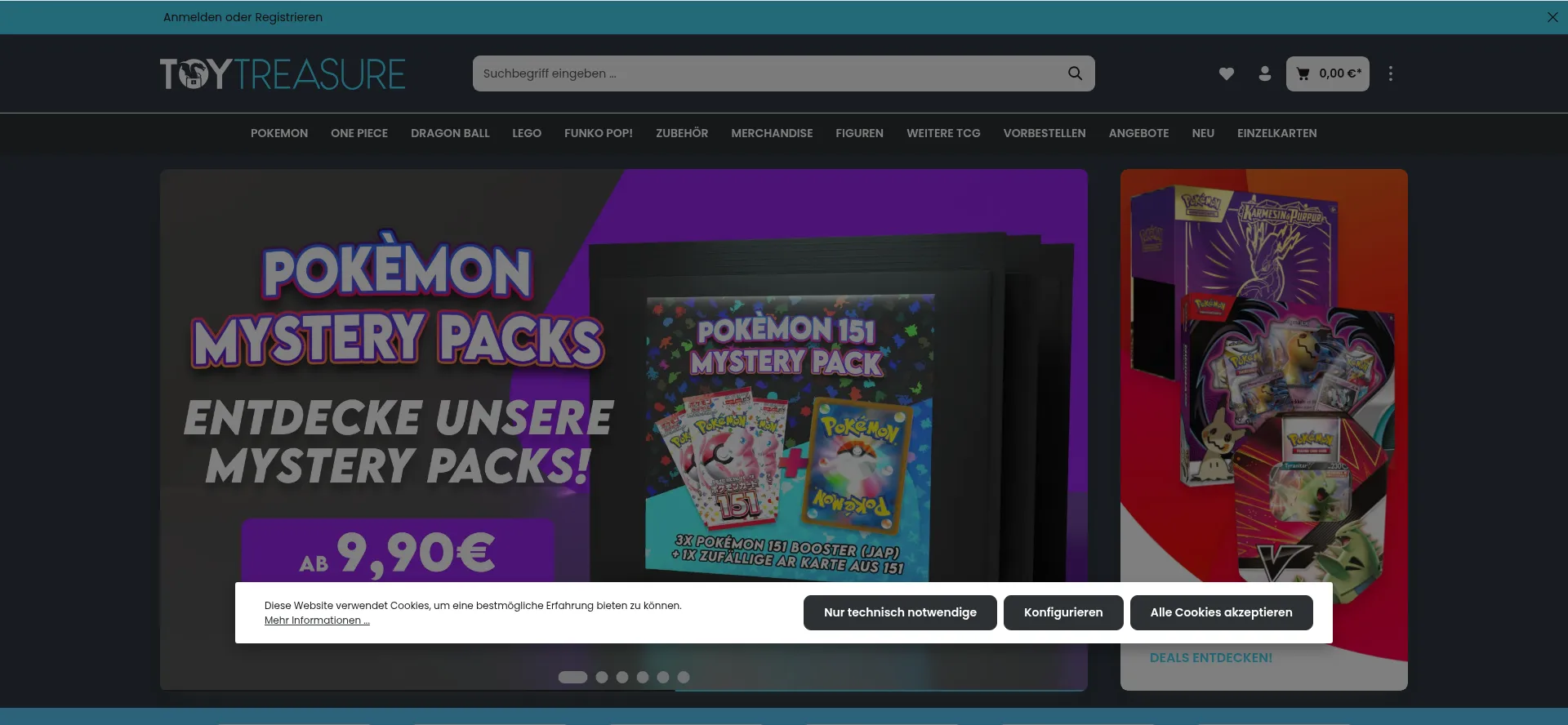 Toy Treasure – dein Online-Shop für TCG Sammelkarten in Deutsch, Englisch & Japanisch. Finde Pokémon, One Piece, Dragon Ball Karten & Anime-Merch!
