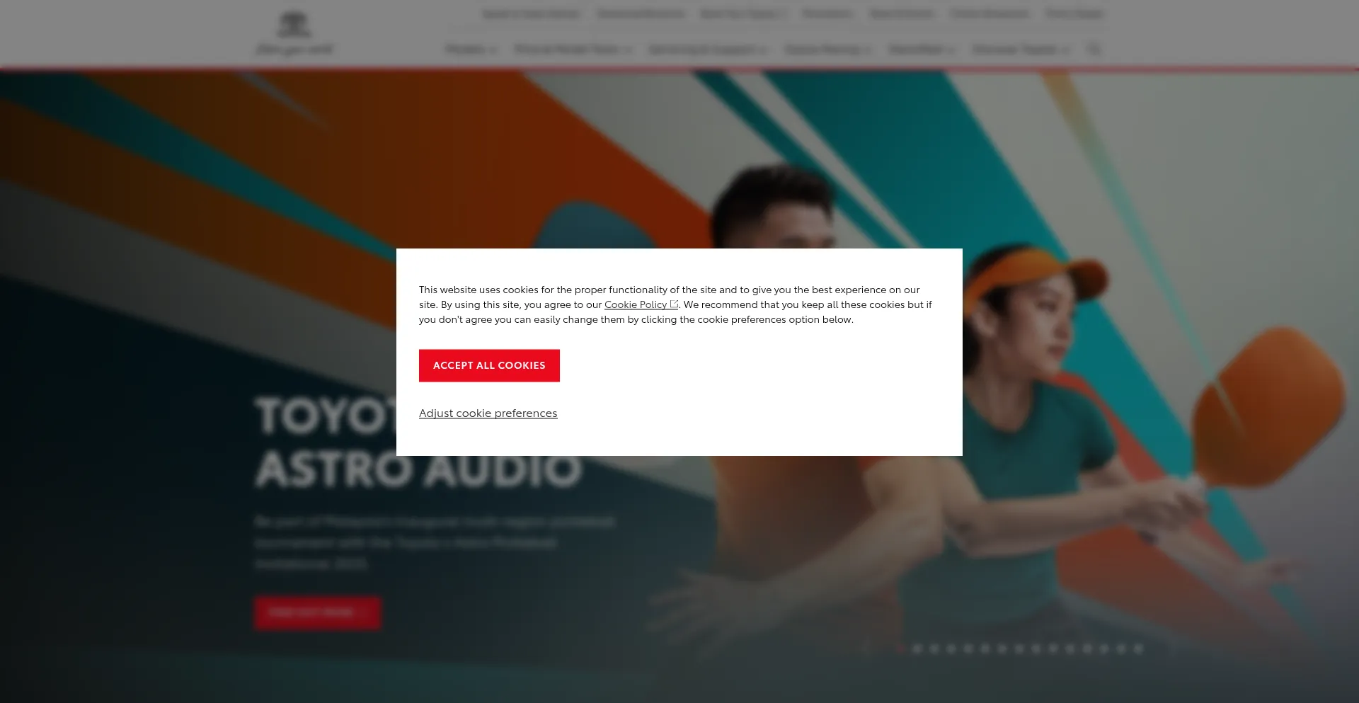 该网站实现符合GDPR或CCPA等隐私法规的cookie同意机制。这表明 toyota.com.my 遵守数据保护标准并为用户提供对个人数据收集实践的控制。