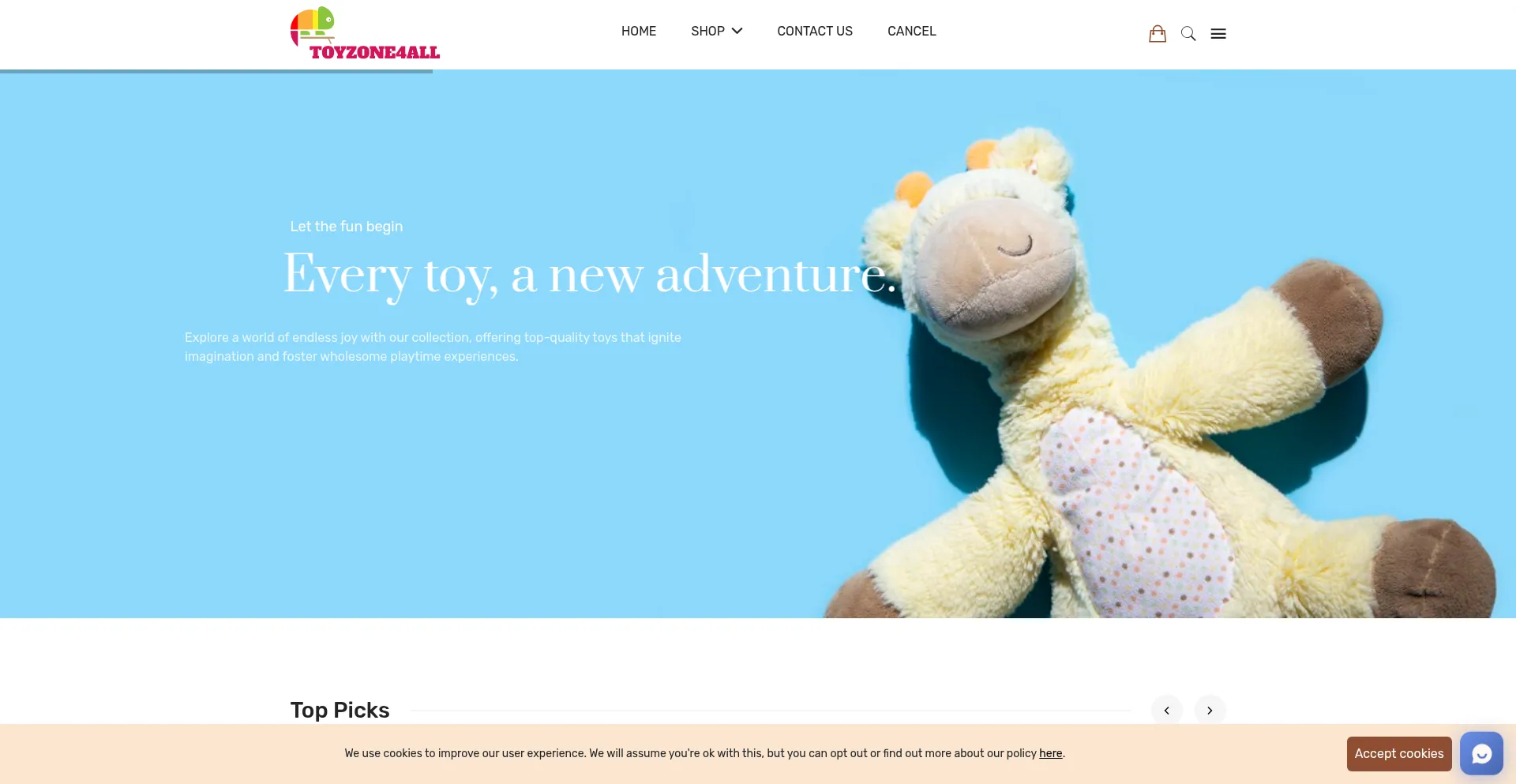 该网站实现符合GDPR或CCPA等隐私法规的cookie同意机制。这表明 toyzone4all.com 遵守数据保护标准并为用户提供对个人数据收集实践的控制。