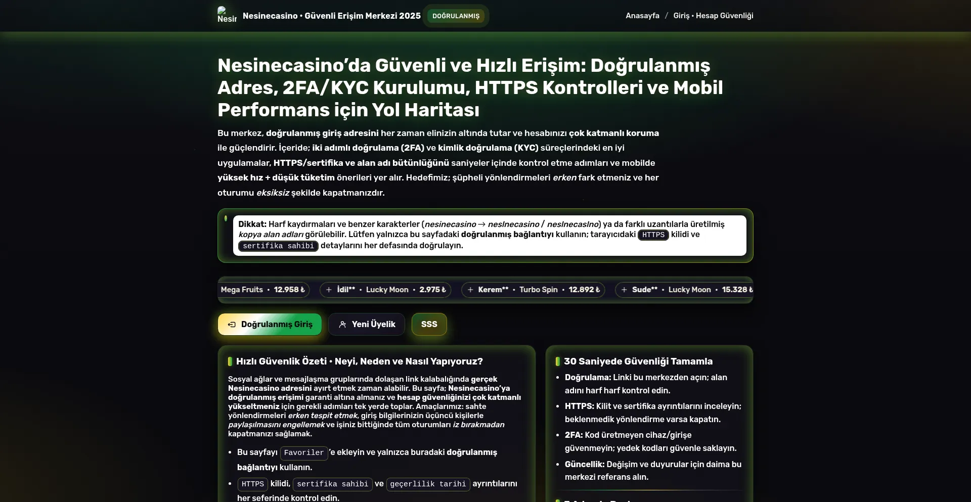 Nesinecasino 2025 • Doğrulanmış Giriş, 2FA/KYC Koruması ve Mobil Hız için Eksiksiz Rehber