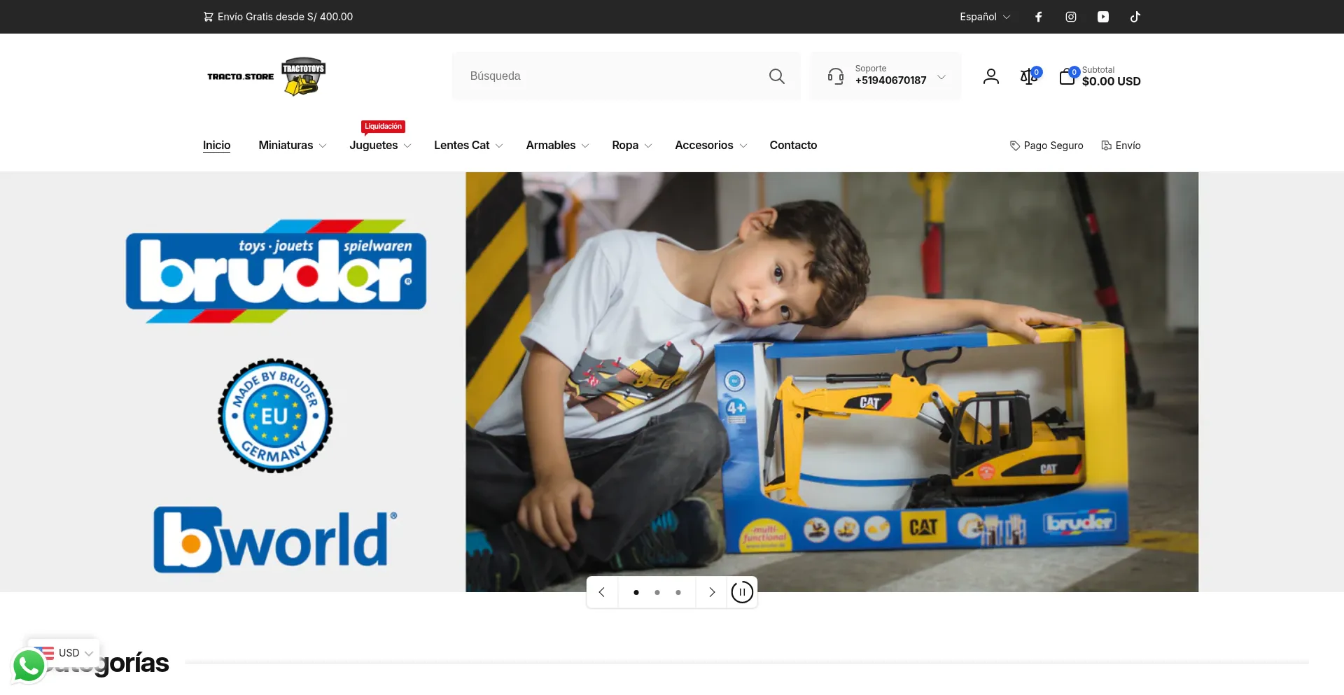 Juguetería especializada en juguetes de tractores, camiones, grúas y autos más novedosos del mercado, tenemos productos novedosos como juguetes Caterpillar y Bruder, también...