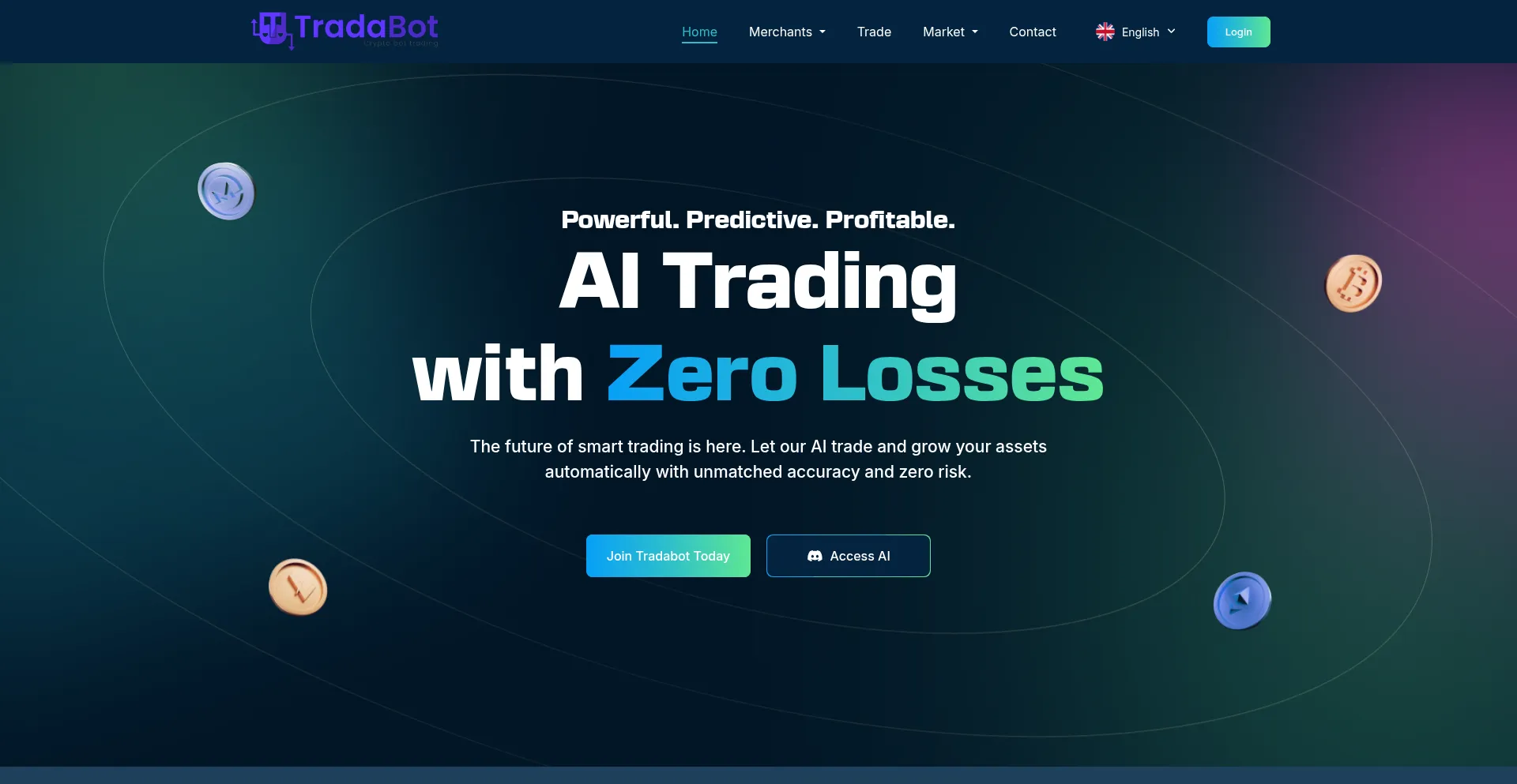 Join Tradabot, the world’s first AI trading platform with a zero-loss record. Let our smart algorithm grow your portfolio automatically. Trade crypto, forex, and stocks with n...