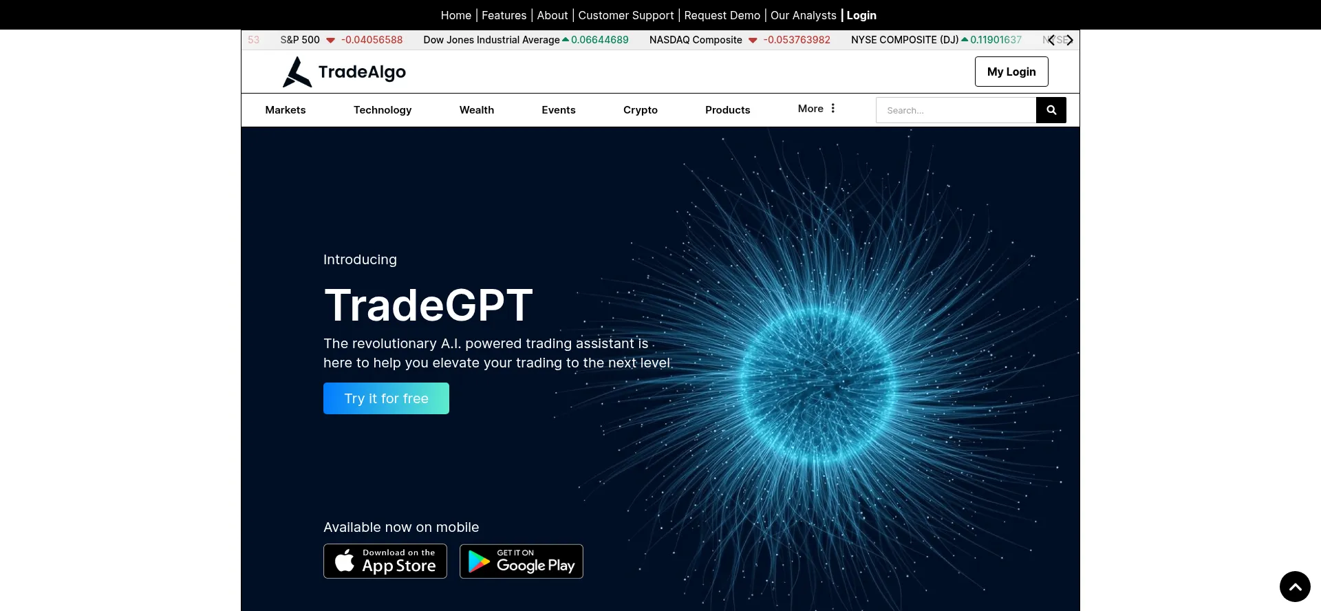 tradealgo.com 拥有可用的 iOS 移动应用程序,表明为 Apple 设备用户提供跨平台可访问性。