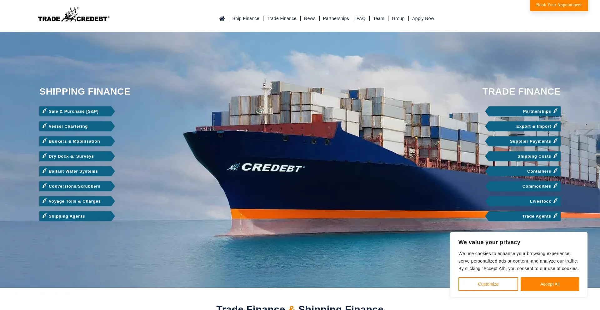 Trade Credebt provides finance for all types of international trade as well as vessel chartering, mobilisation, and operational costs in the shipping industry.
