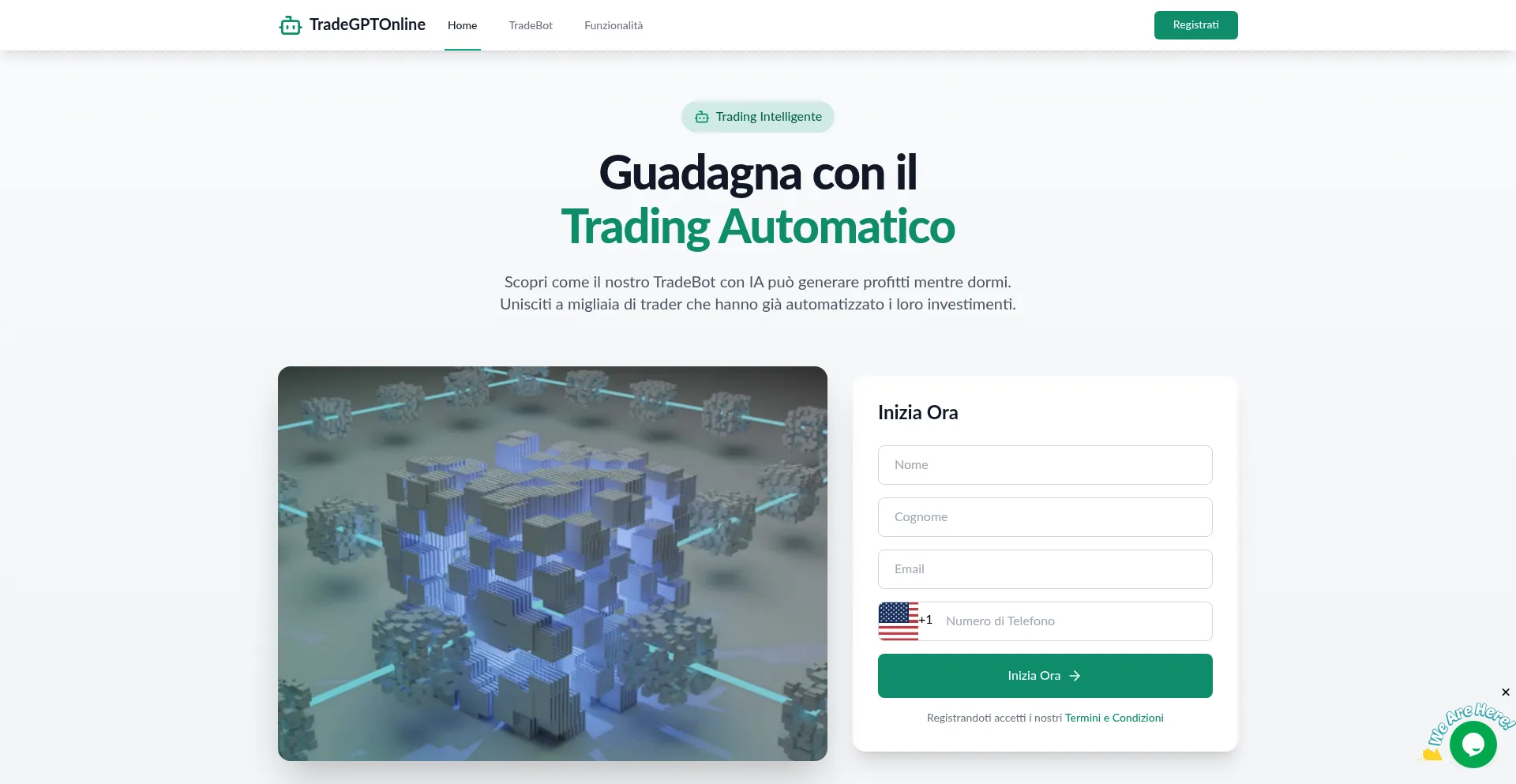 该网站实现数据收集表单,请求个人信息,包括姓名、电子邮件地址、电话号码或其他敏感详细信息。用户应验证 tradegptonline.com 的合法性并在提交个人数据前查看隐私政策。