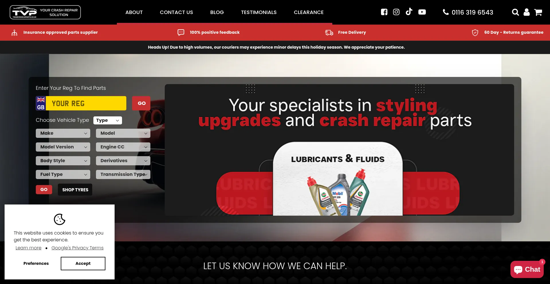该网站实现符合GDPR或CCPA等隐私法规的cookie同意机制。这表明 tradevehicleparts.co.uk 遵守数据保护标准并为用户提供对个人数据收集实践的控制。