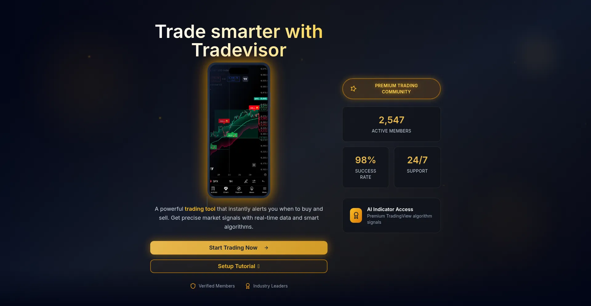 Join 2500+ active traders using Tradevisor's premium indicators. Advanced trading signals, community wins, and professional setup guides for TradingView.