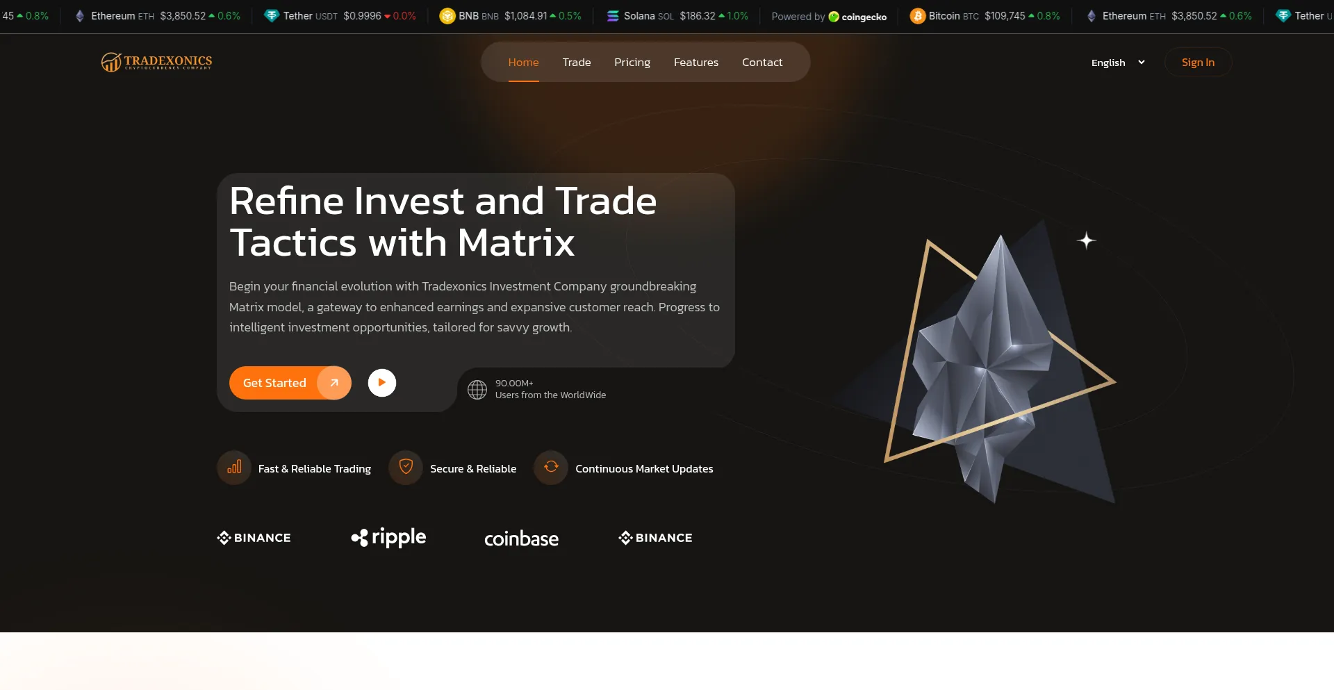 tradexonics.com 使用 Bootstrap,这是一个广泛采用的开源响应式网页开发框架。Bootstrap 通过标准化组件和样式实现移动友好界面的高效创建。