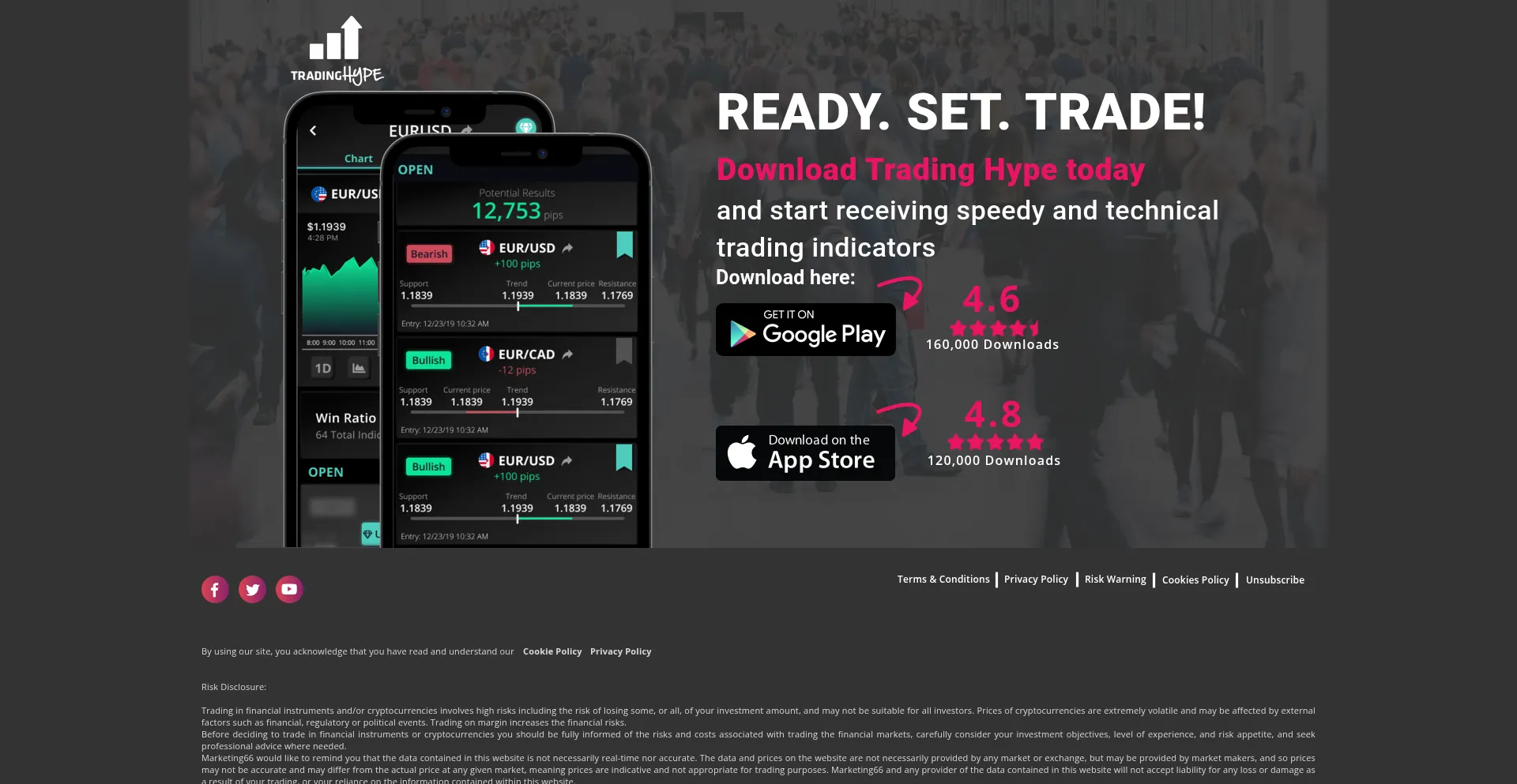 网站上存在社交媒体链接表明 tradinghype.com 在社交媒体上维护官方账户,这是可信度和参与度的积极信号。