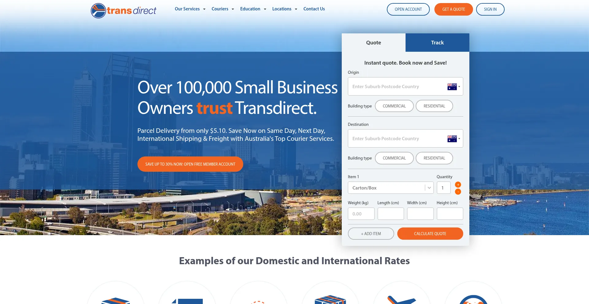 Book couriers, freight, and parcel delivery with Transdirect. Acces fast & reliable shipping at competitive prices. Get your quote today.
