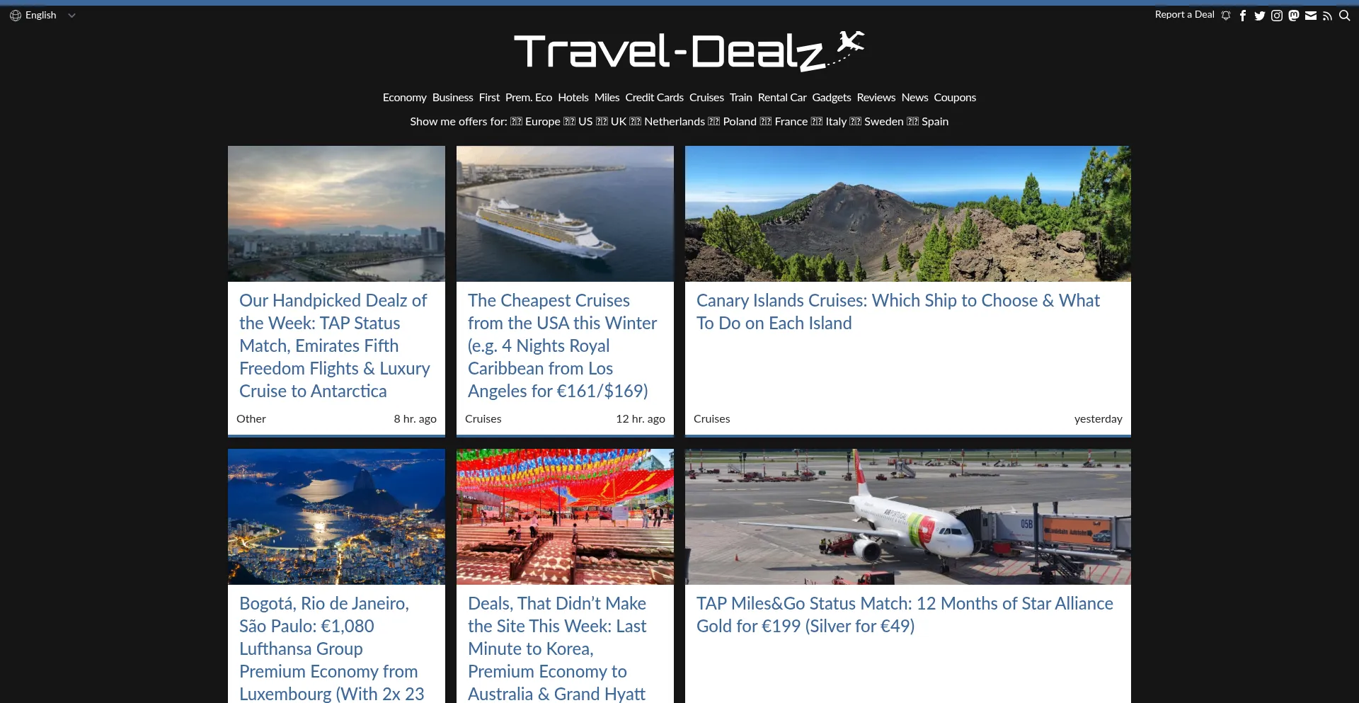 网站上存在社交媒体链接表明 travel-dealz.com 在社交媒体上维护官方账户,这是可信度和参与度的积极信号。