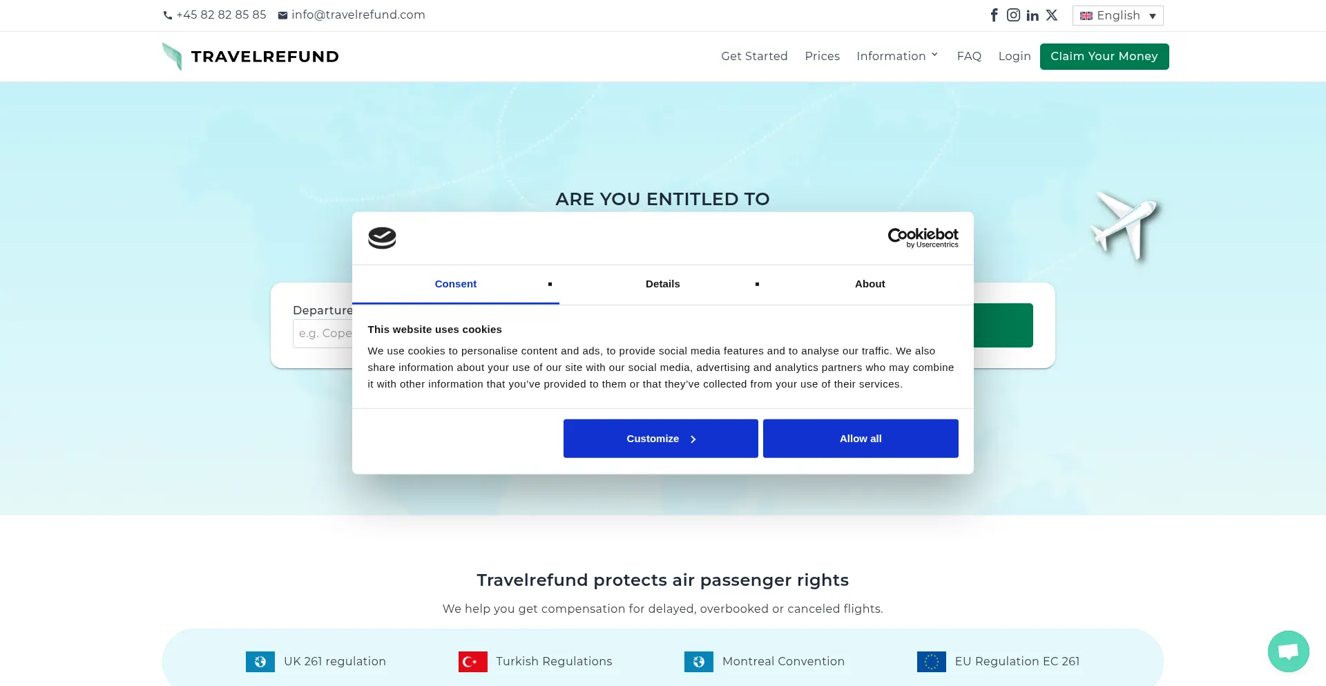 该网站实现符合GDPR或CCPA等隐私法规的cookie同意机制。这表明 travelrefund.com 遵守数据保护标准并为用户提供对个人数据收集实践的控制。