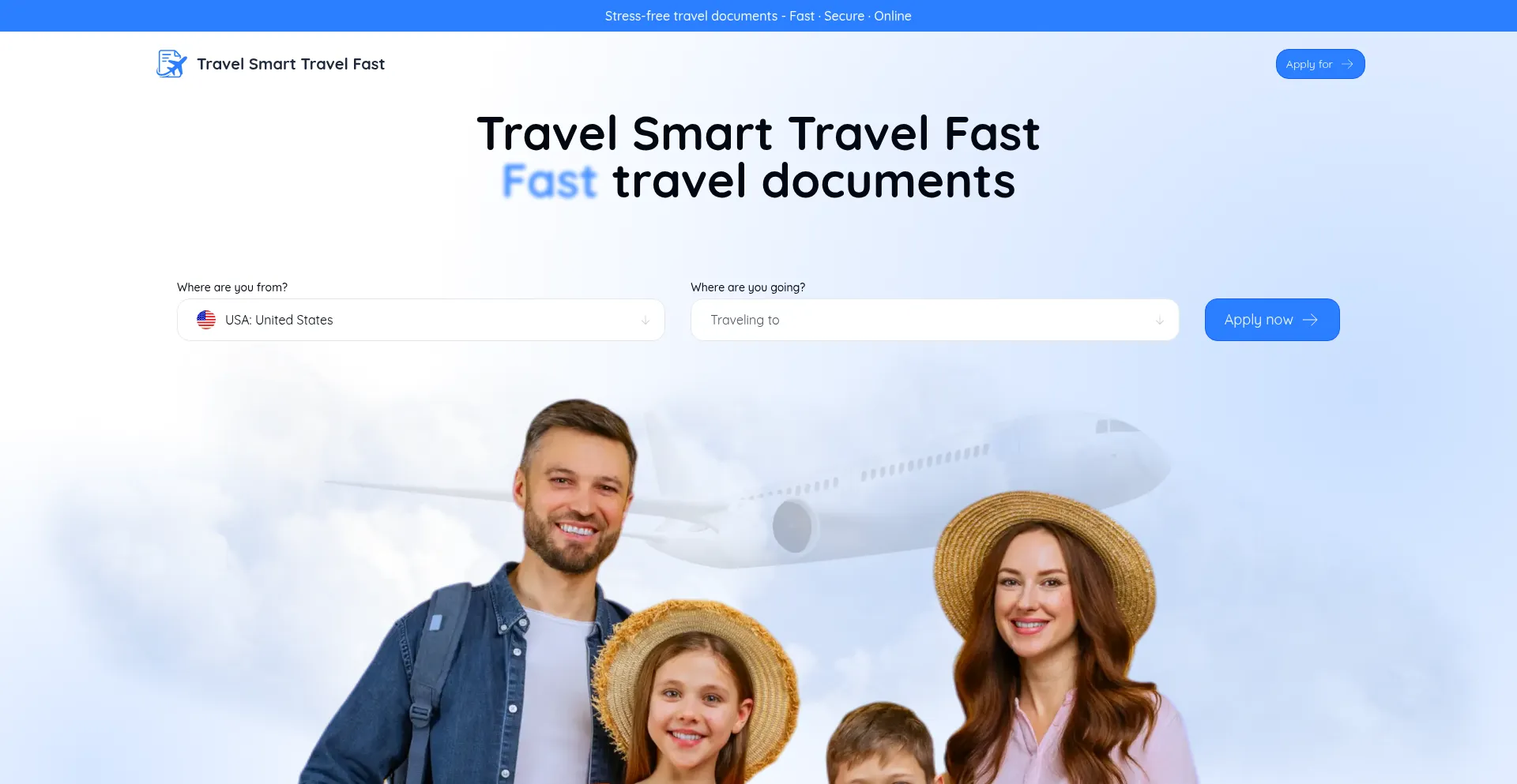 Stress-free travel documents. Fast · Secure · Online.