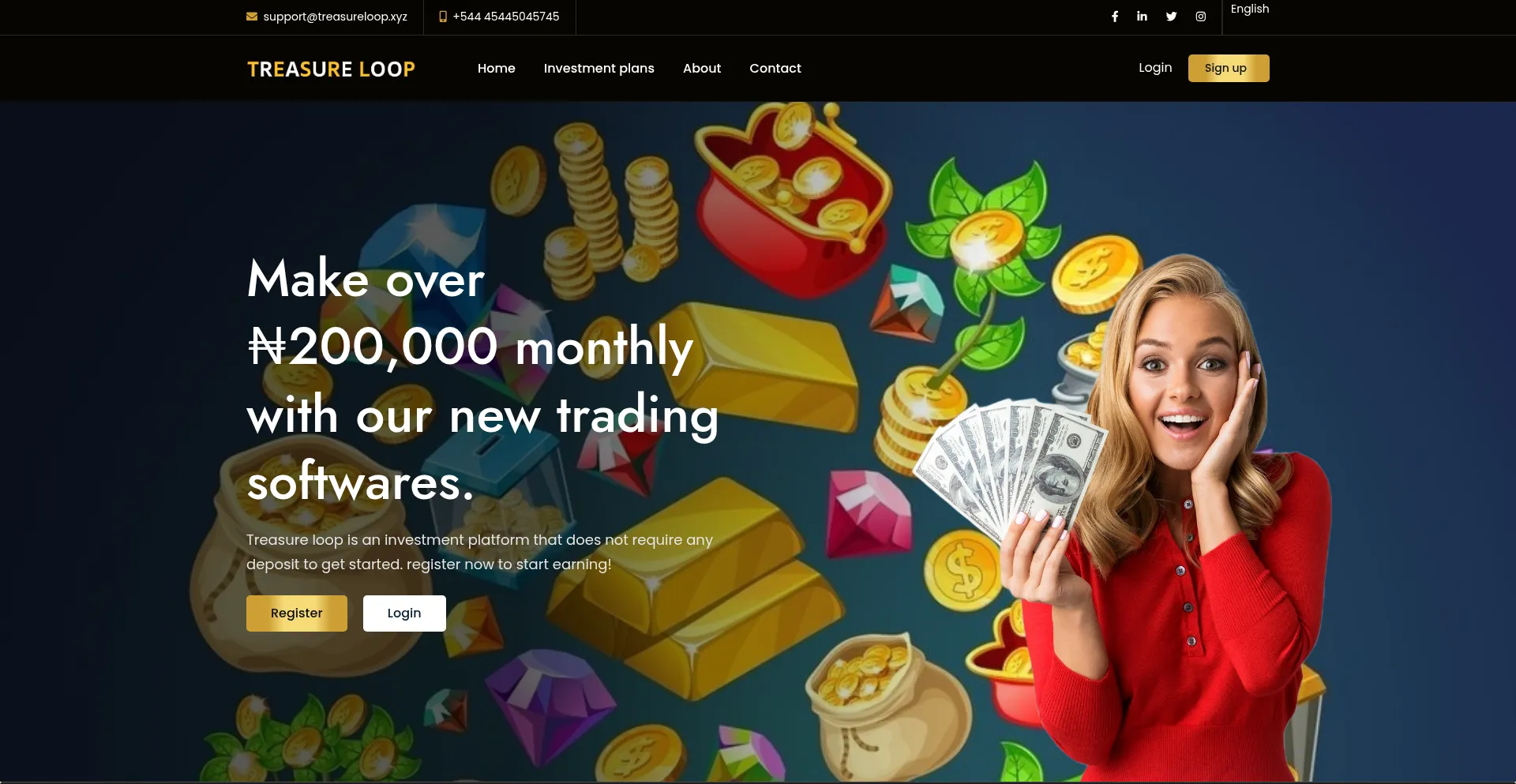 Treasure loop is an investment platform that does not require any deposit to get started.