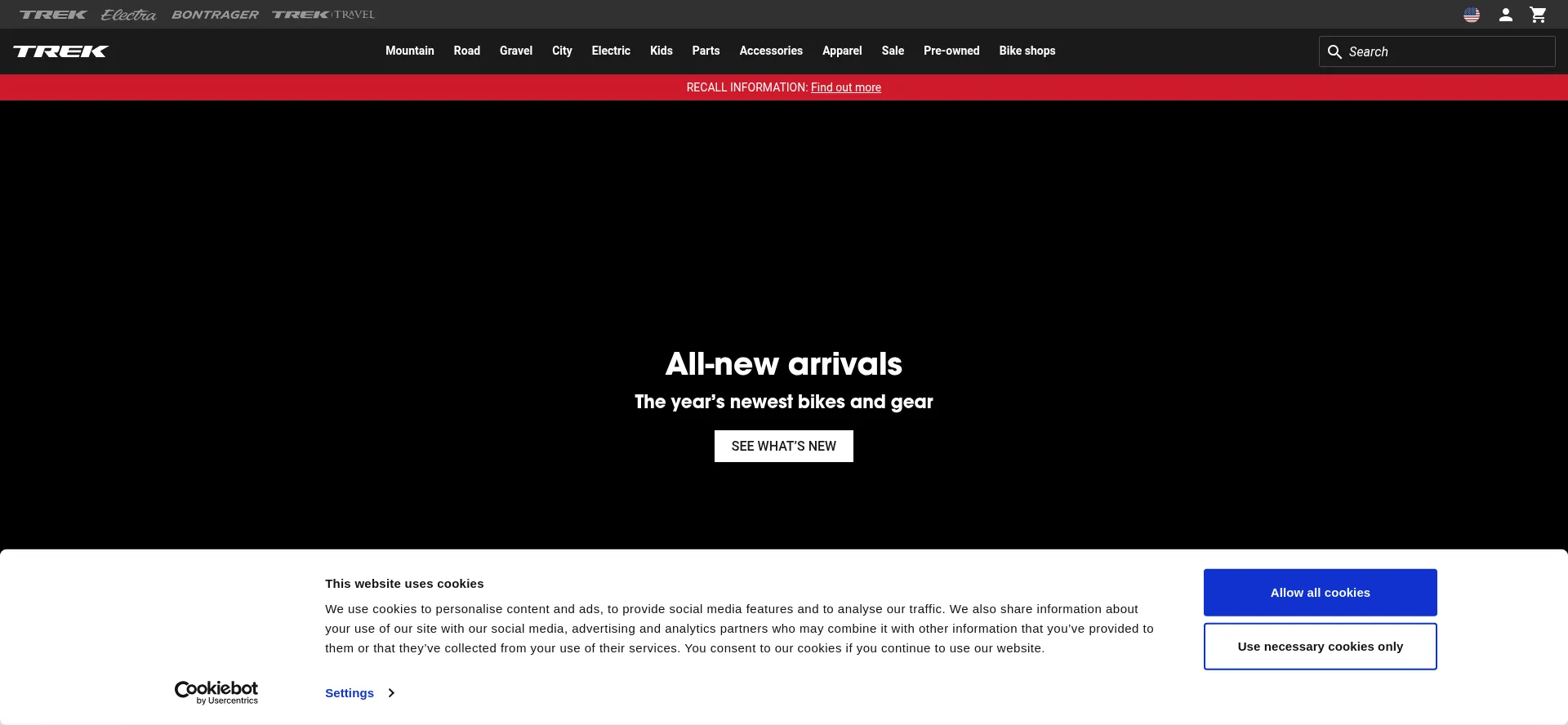 该网站实现符合GDPR或CCPA等隐私法规的cookie同意机制。这表明 trekbikes.com 遵守数据保护标准并为用户提供对个人数据收集实践的控制。