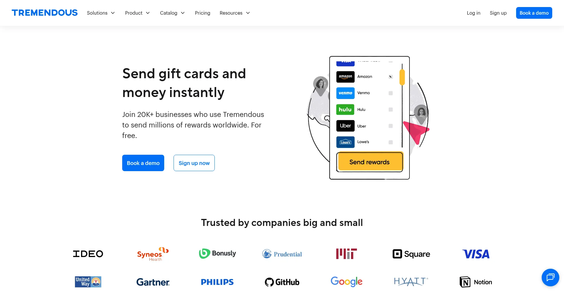 10K+ businesses use Tremendous to send gift cards and money instantly to their employees, prospects, customers, and more. Start sending for free today.