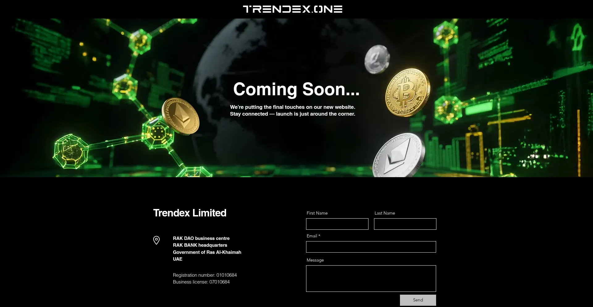 该网站实现数据收集表单,请求个人信息,包括姓名、电子邮件地址、电话号码或其他敏感详细信息。用户应验证 trendex.one 的合法性并在提交个人数据前查看隐私政策。