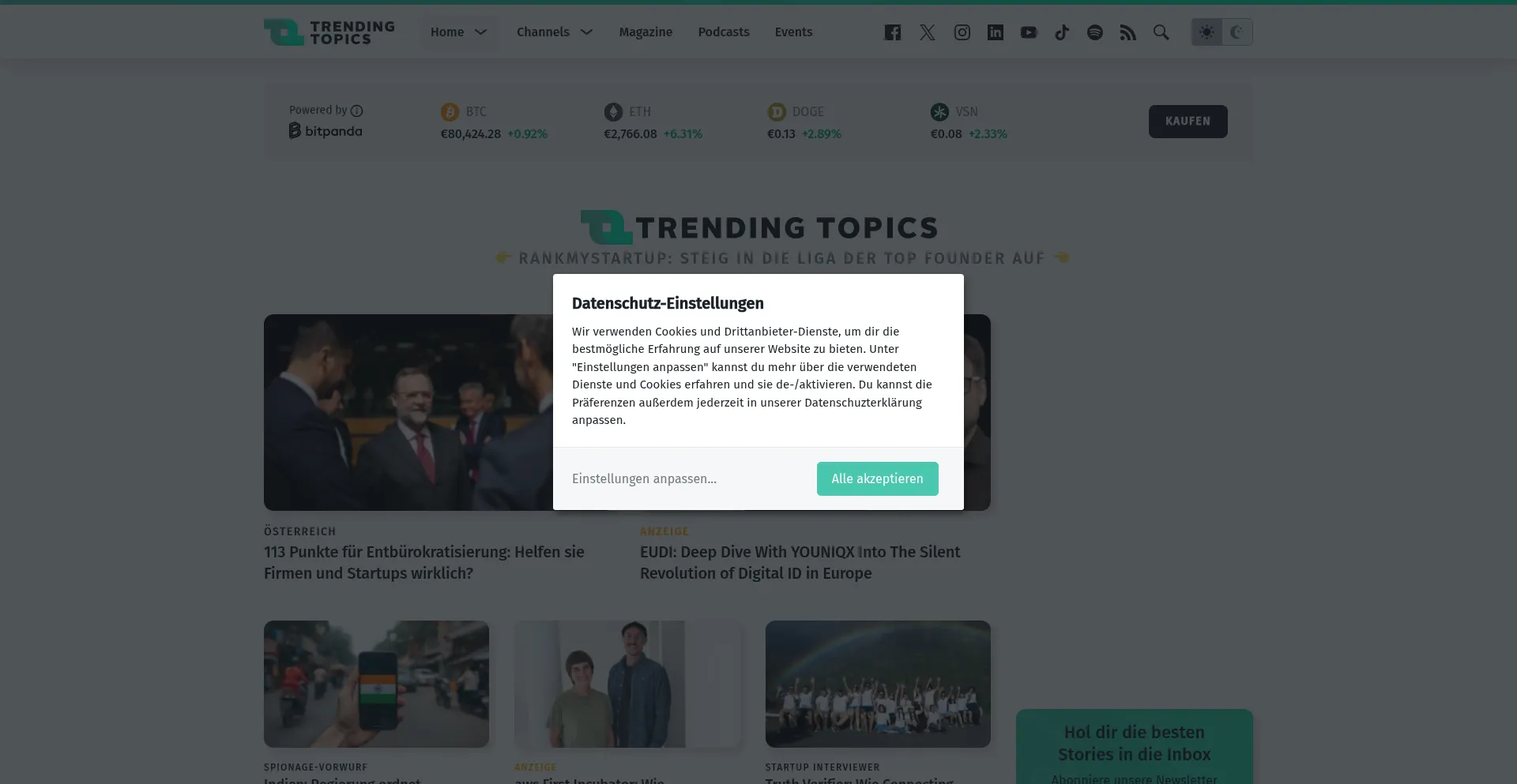 网站上存在社交媒体链接表明 trendingtopics.eu 在社交媒体上维护官方账户,这是可信度和参与度的积极信号。