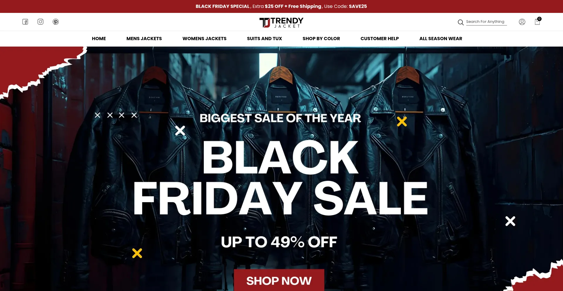网站上存在社交媒体链接表明 trendyjacket.com 在社交媒体上维护官方账户,这是可信度和参与度的积极信号。