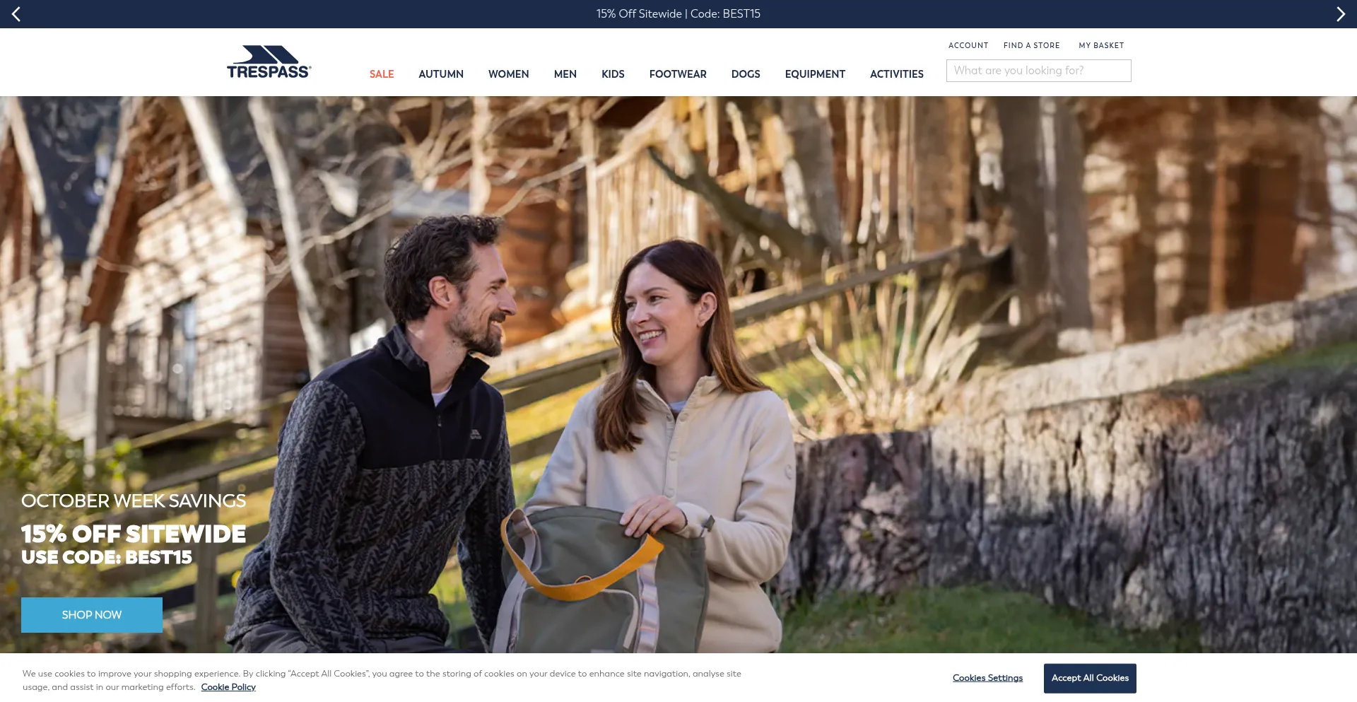该网站实现符合GDPR或CCPA等隐私法规的cookie同意机制。这表明 trespass.co.uk 遵守数据保护标准并为用户提供对个人数据收集实践的控制。