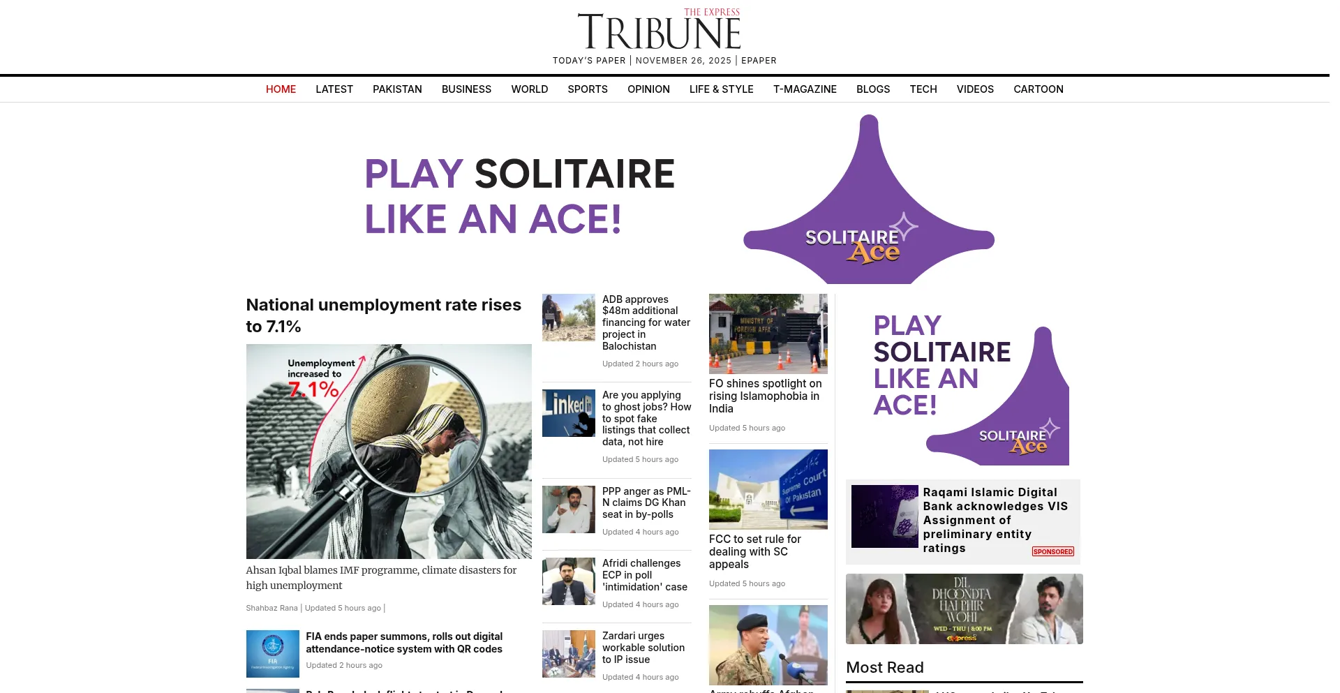 tribune.com.pk 提供 Android 设备移动应用程序,表明平台存在已扩展到网络服务之外。
