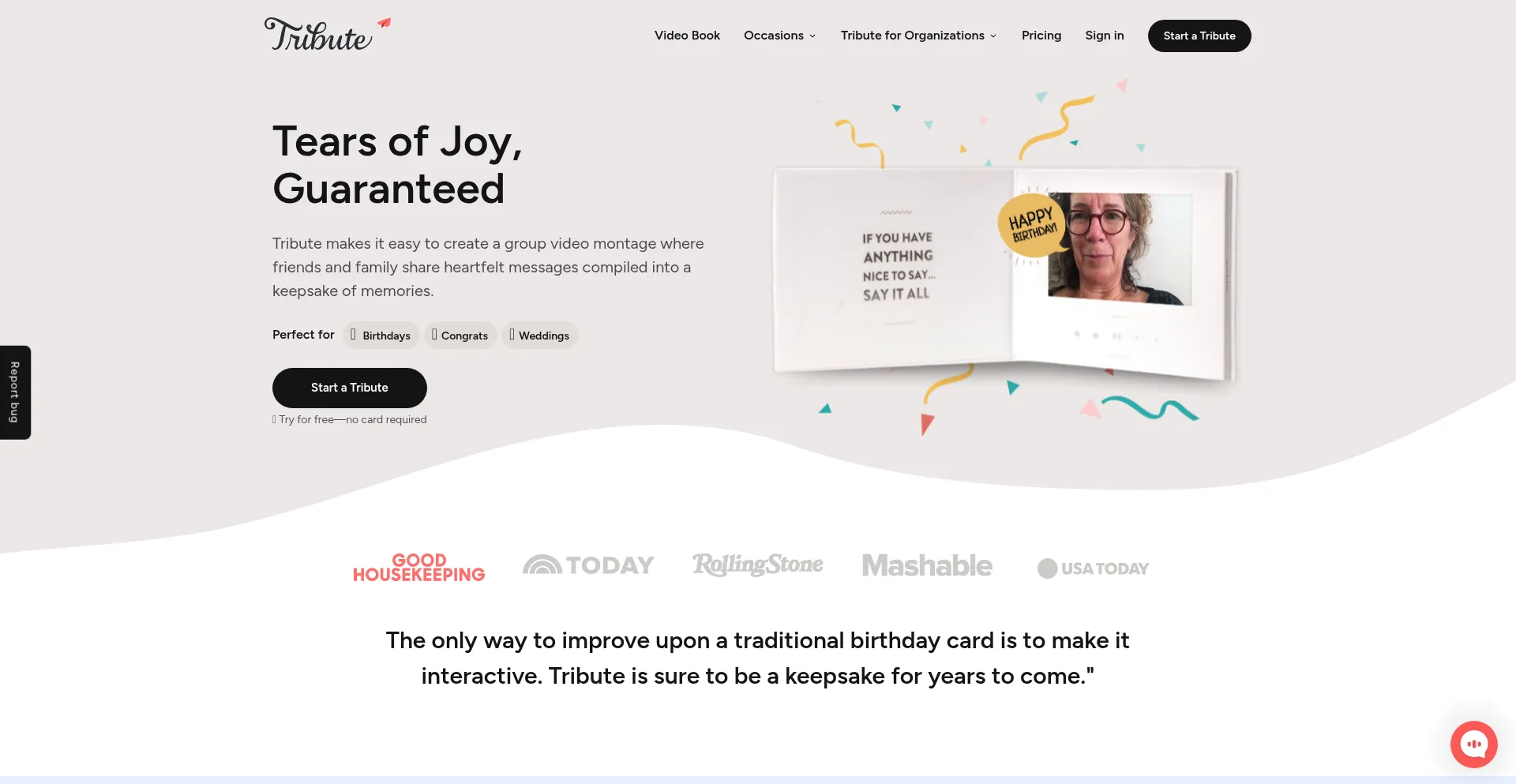 Looking for a special, meaningful gift? Share your love and appreciation with a video tribute. Easy to create group videos - start a Tribute in 30 seconds!