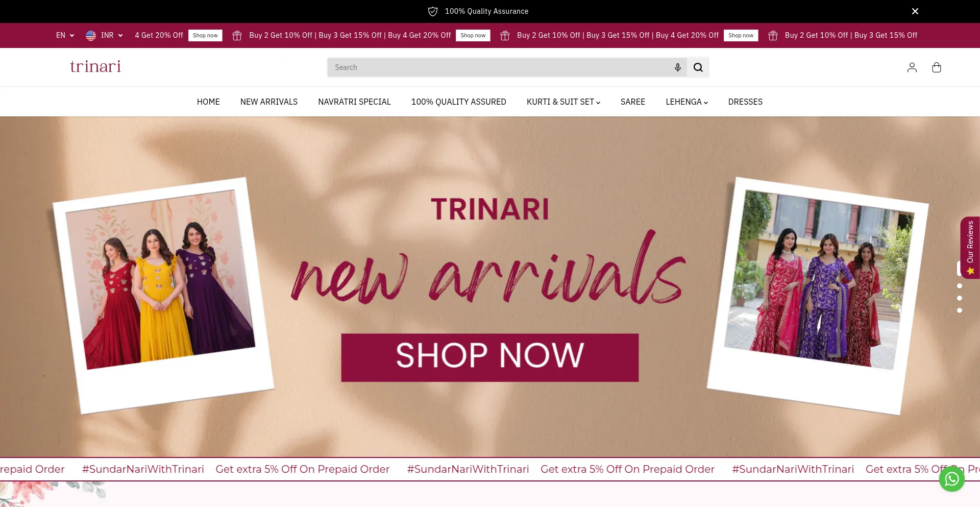 Discover premium ethnic wear for women at Trinari. Shop handpicked lehengas, suits & sarees with elegant designs & fast delivery across India.