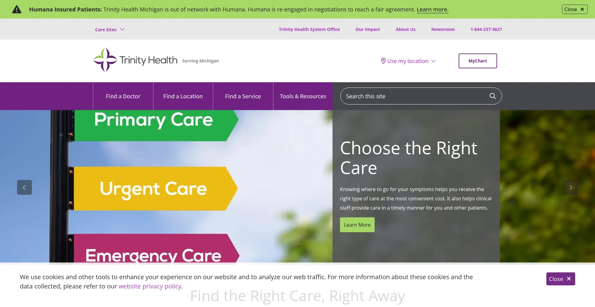 该网站实现符合GDPR或CCPA等隐私法规的cookie同意机制。这表明 trinityhealthmichigan.org 遵守数据保护标准并为用户提供对个人数据收集实践的控制。