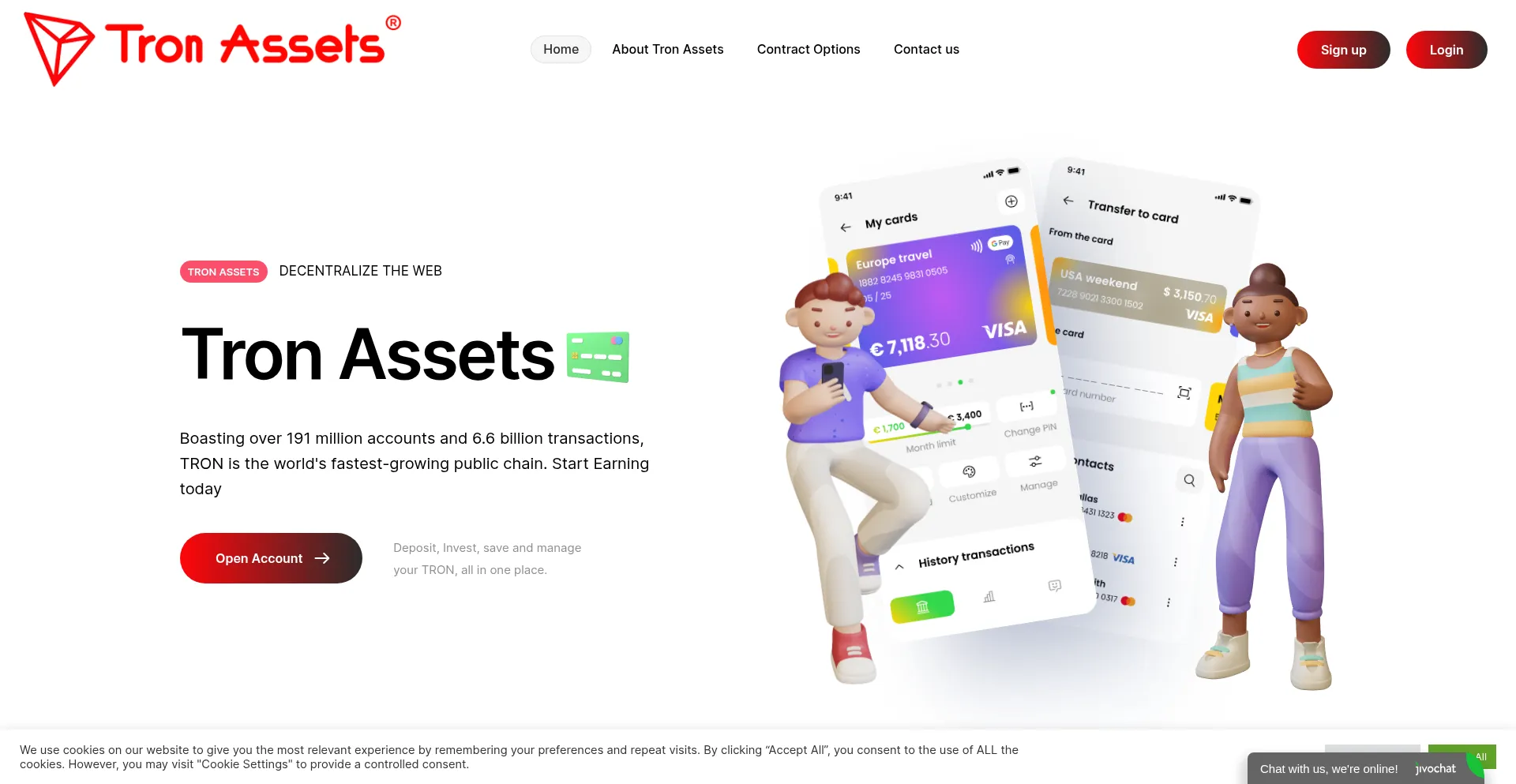 该网站实现数据收集表单,请求个人信息,包括姓名、电子邮件地址、电话号码或其他敏感详细信息。用户应验证 tronassets.com 的合法性并在提交个人数据前查看隐私政策。