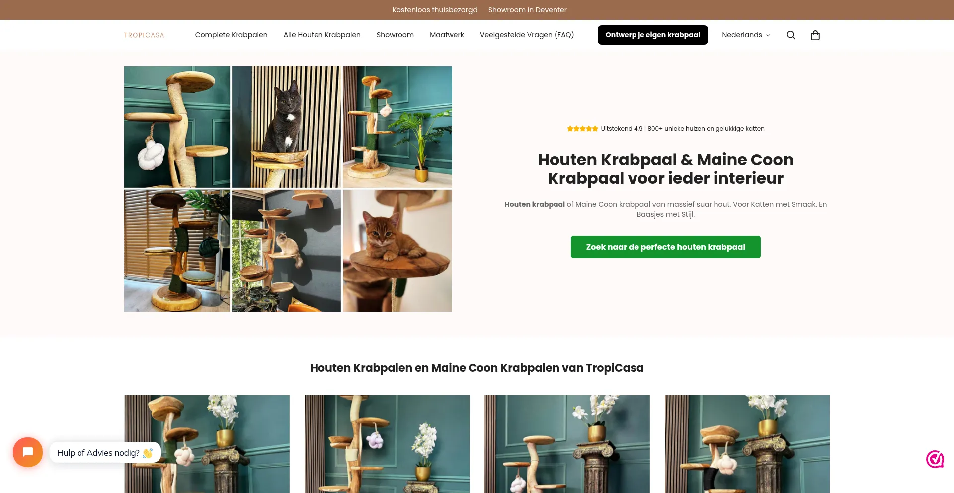 Zoek jouw perfecte Houten Krabpaal of Maine Coon Krabpaal | Gratis levering in heel Nederland | Ontdek het verschil van de houten krabpalen en maine coon krabpalen van TropiCasa