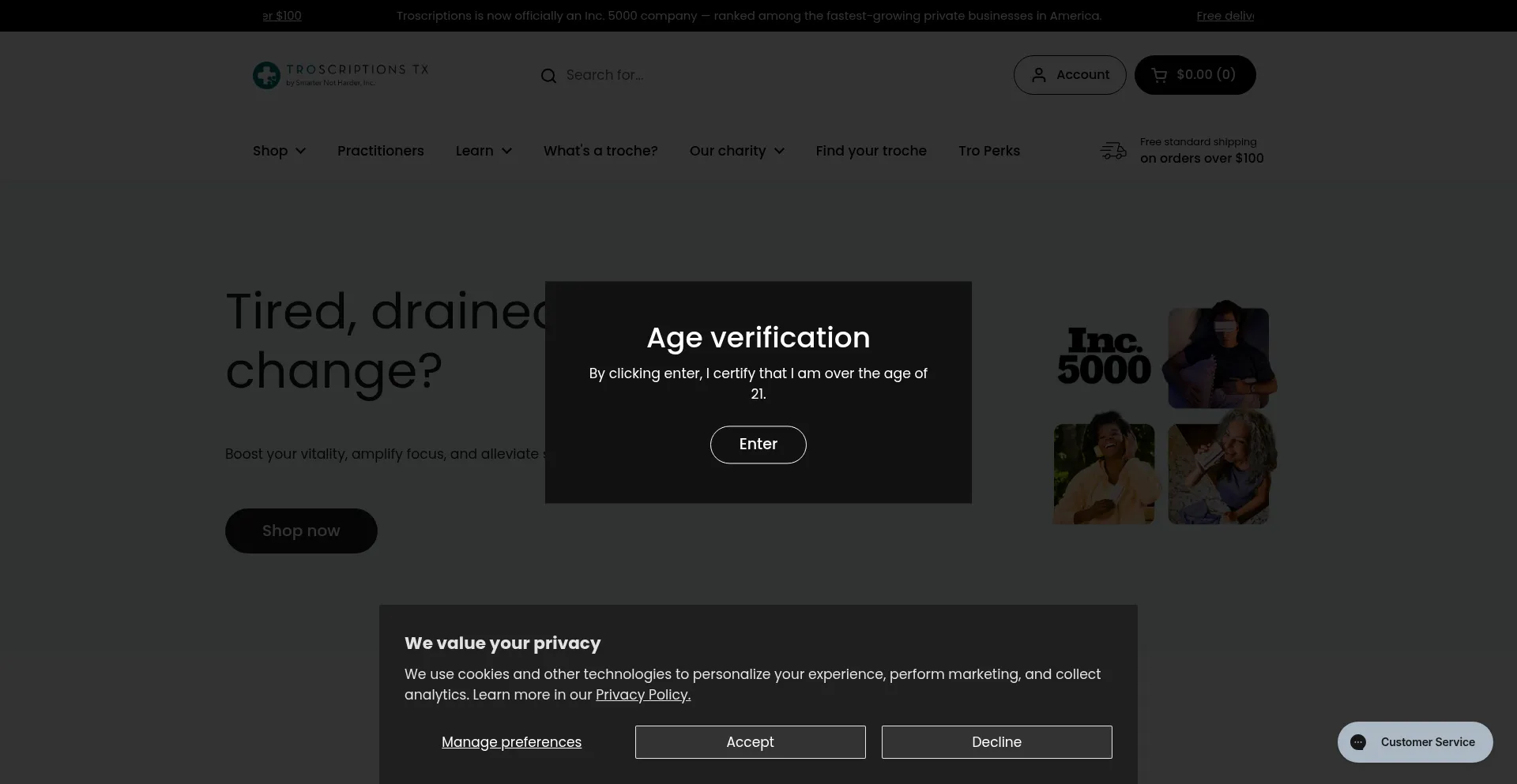 该网站实现符合GDPR或CCPA等隐私法规的cookie同意机制。这表明 troscriptions.com 遵守数据保护标准并为用户提供对个人数据收集实践的控制。