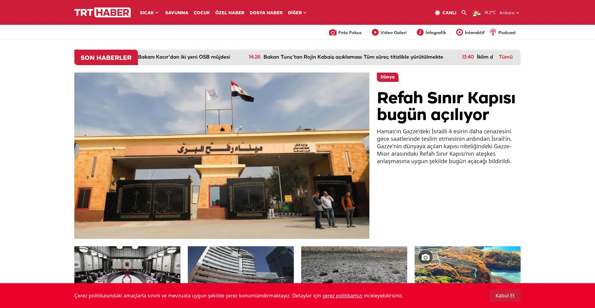 Haber ve son dakika güncel gelişmeler, spor ve ekonomi haberleri, dünyadan haberler ile hava durumu Türkiye’nin güvenilir haber kaynağı TRT Haber`de.